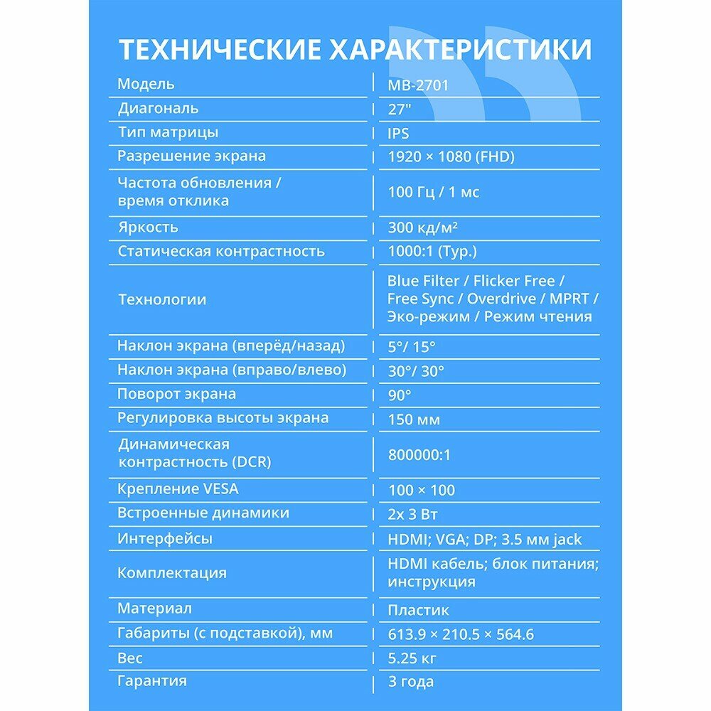 Откройте для себя мир ярких красок и четких деталей с монитором CBR MB-2701. Ваш новый экран ждет вас!