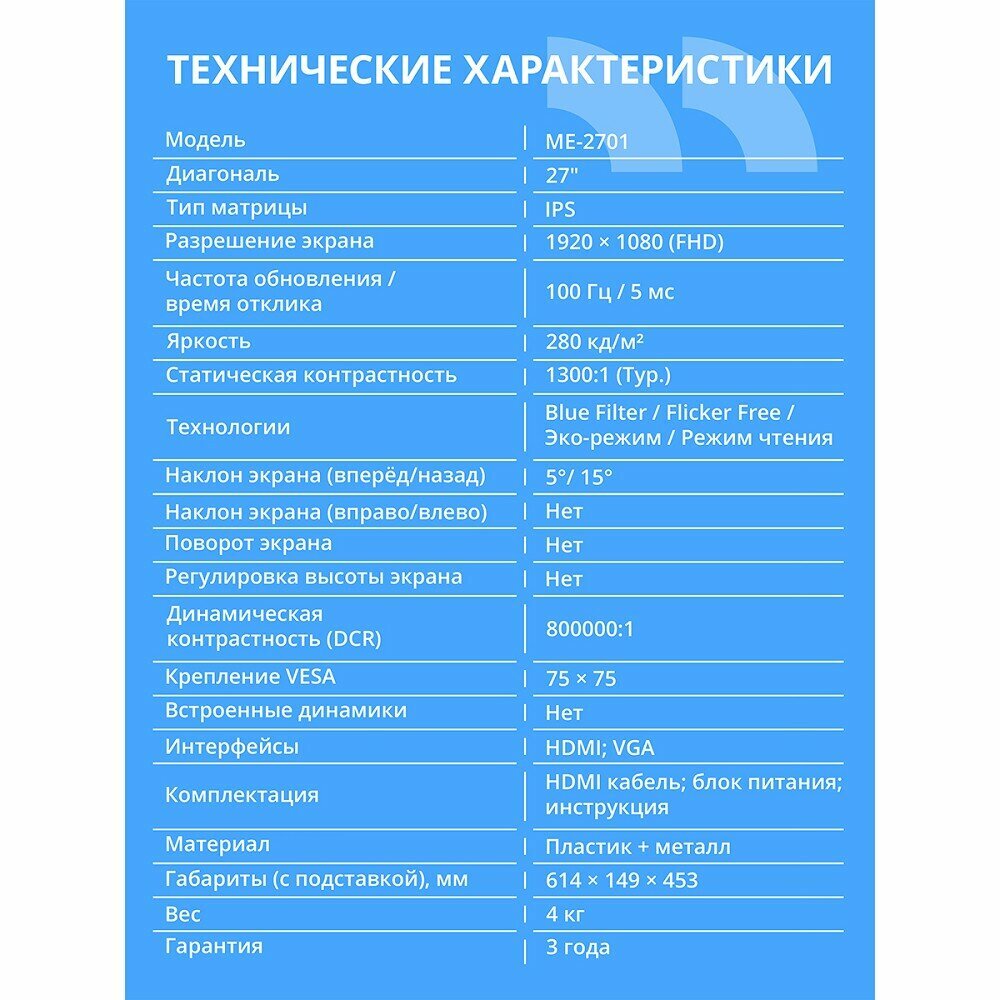 Закажите монитор CBR ME-2701 прямо сейчас и ощутите все преимущества современного дисплея! Почувствуйте разницу с первых минут использования.