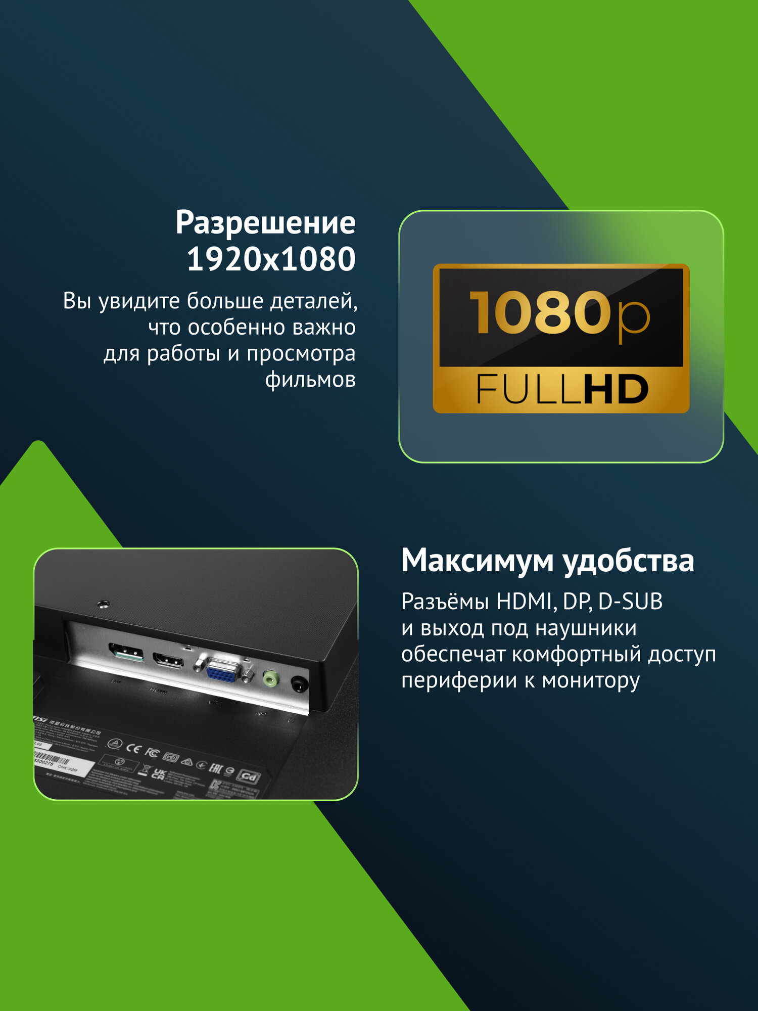 Этот монитор не только функционален, но и стилен. Его минималистичный дизайн прекрасно впишется в любой интерьер, добавив ему элегантности и современности. Черный цвет корпуса придает монитору строгий и профессиональный вид.