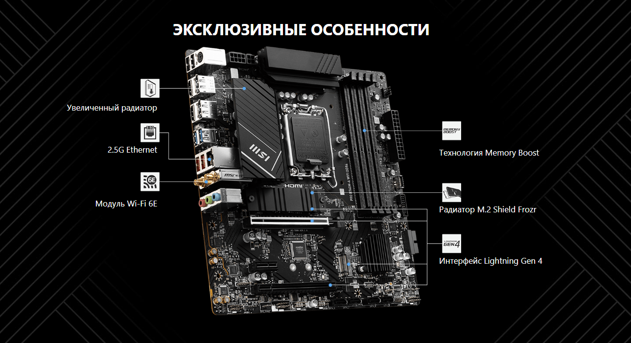Компактный форм-фактор позволяет использовать эту материнскую плату в различных корпусах, от небольших до более просторных, что дает вам больше свободы при выборе конфигурации системы.