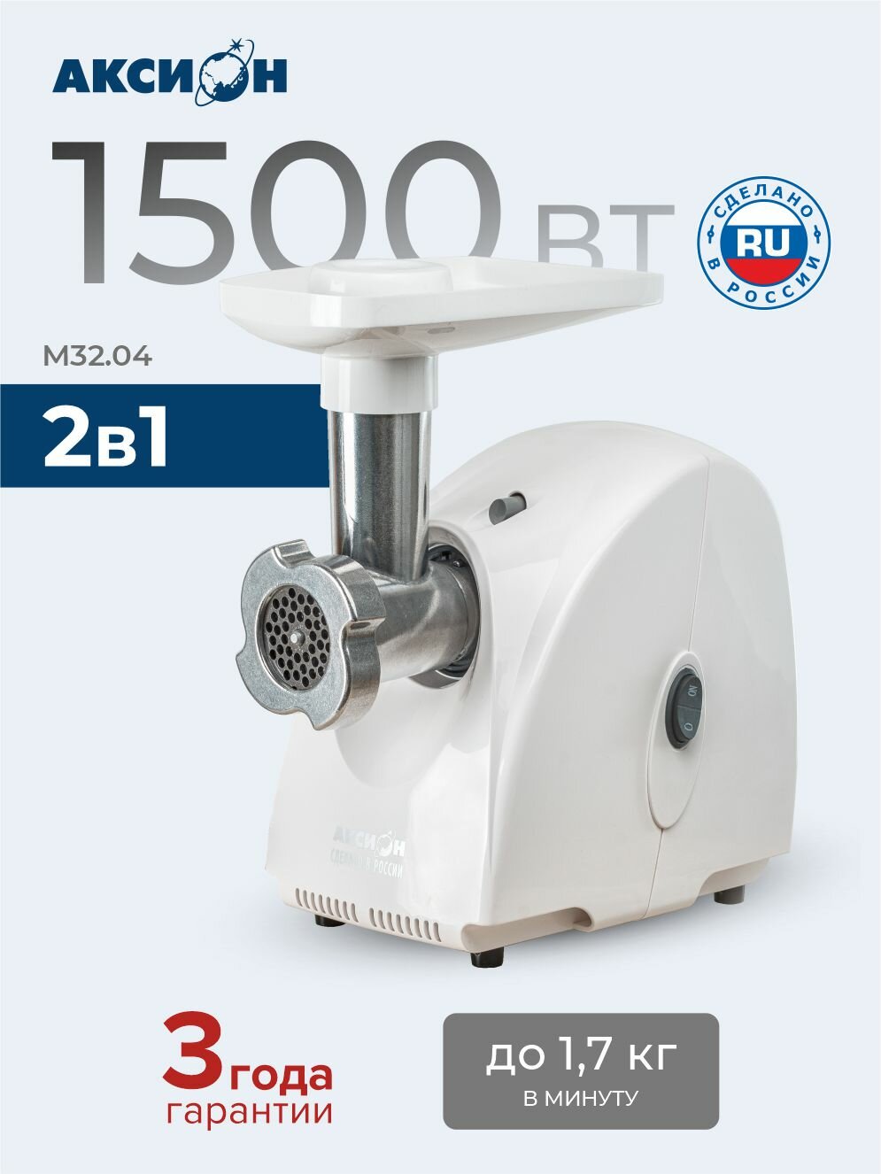 Забудьте о ручной работе! С электрической мясорубкой Аксион М3204 приготовление любимых блюд станет простым и приятным процессом. Почувствуйте разницу и наслаждайтесь вкусом домашней еды!