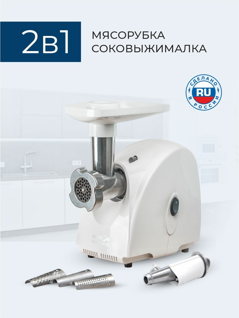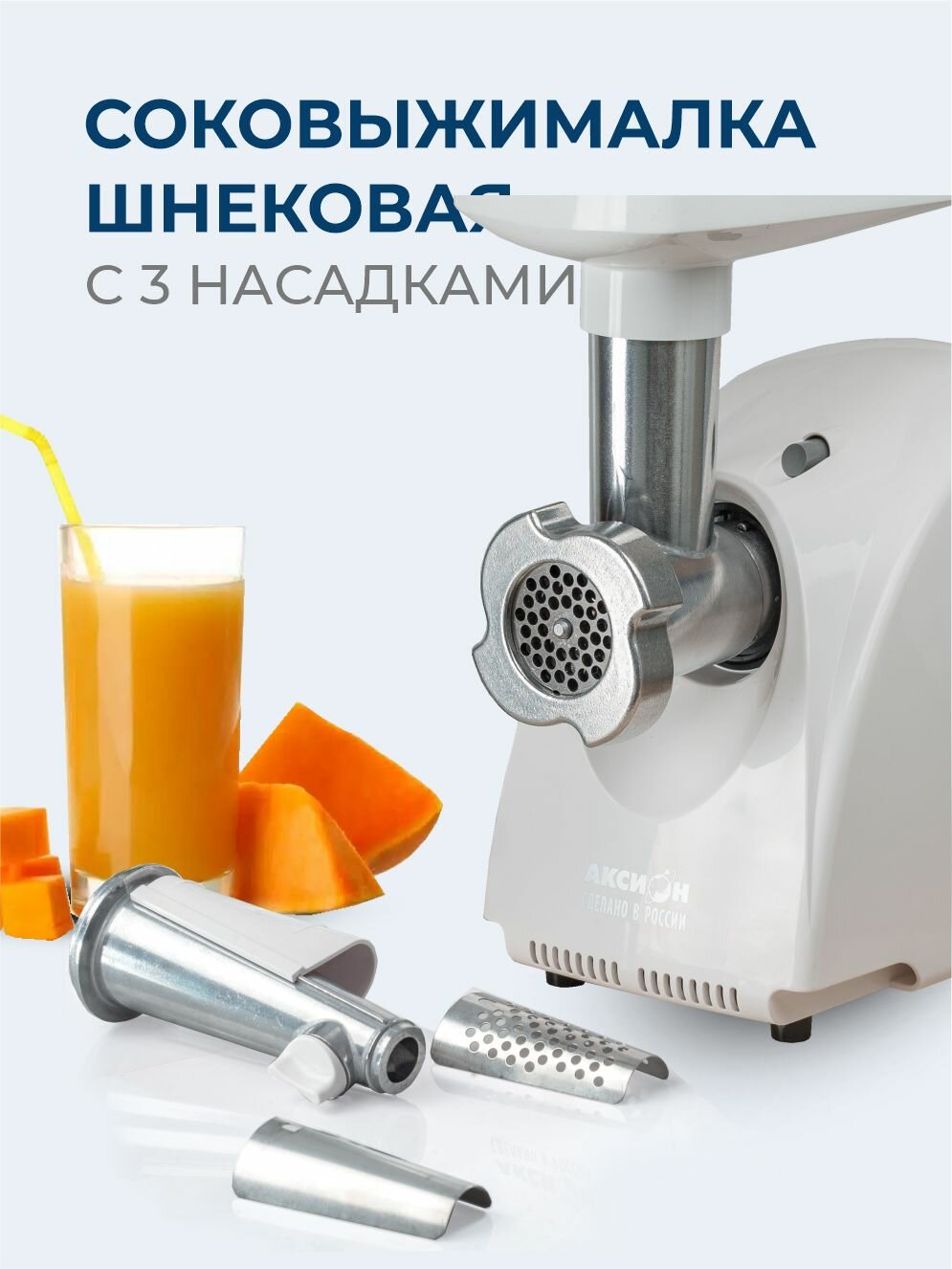 Это устройство объединяет в себе функции мощной мясорубки и шнековой соковыжималки, позволяя быстро и качественно перерабатывать мясо в фарш нужной консистенции, а также получать свежие и полезные соки из фруктов и овощей.