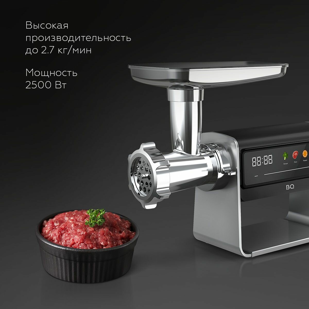 Эта современная мясорубка объединяет в себе высокую производительность и элегантный дизайн. Благодаря высокой мощности, она с легкостью справляется с любым видом мяса, превращая его в идеальный фарш за считанные секунды. Простота и удобство использования – вот что отличает эту модель. Интуитивно понятный сенсорный дисплей позволяет легко выбирать нужный режим работы, а функция реверса предотвращает застревание мяса и обеспечивает бесперебойную работу.