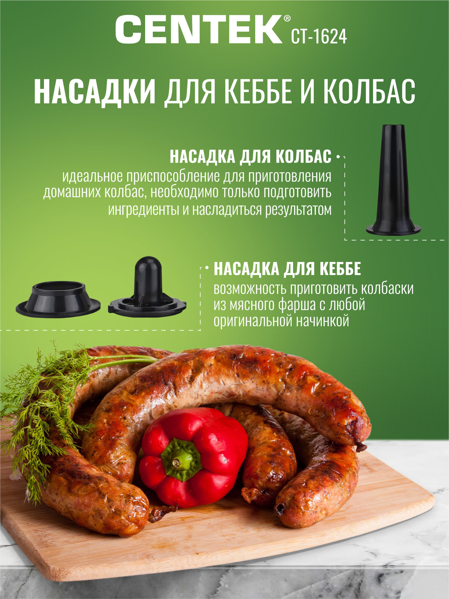 Благодаря высокой мощности, Centek CT-1624 легко справляется даже с жилистым мясом, гарантируя однородный фарш без лишних усилий. В комплекте вы найдете все необходимые насадки для приготовления не только фарша, но и домашних колбас и кеббе. Это значительно расширяет возможности использования мясорубки и позволяет вам радовать близких разнообразием блюд.