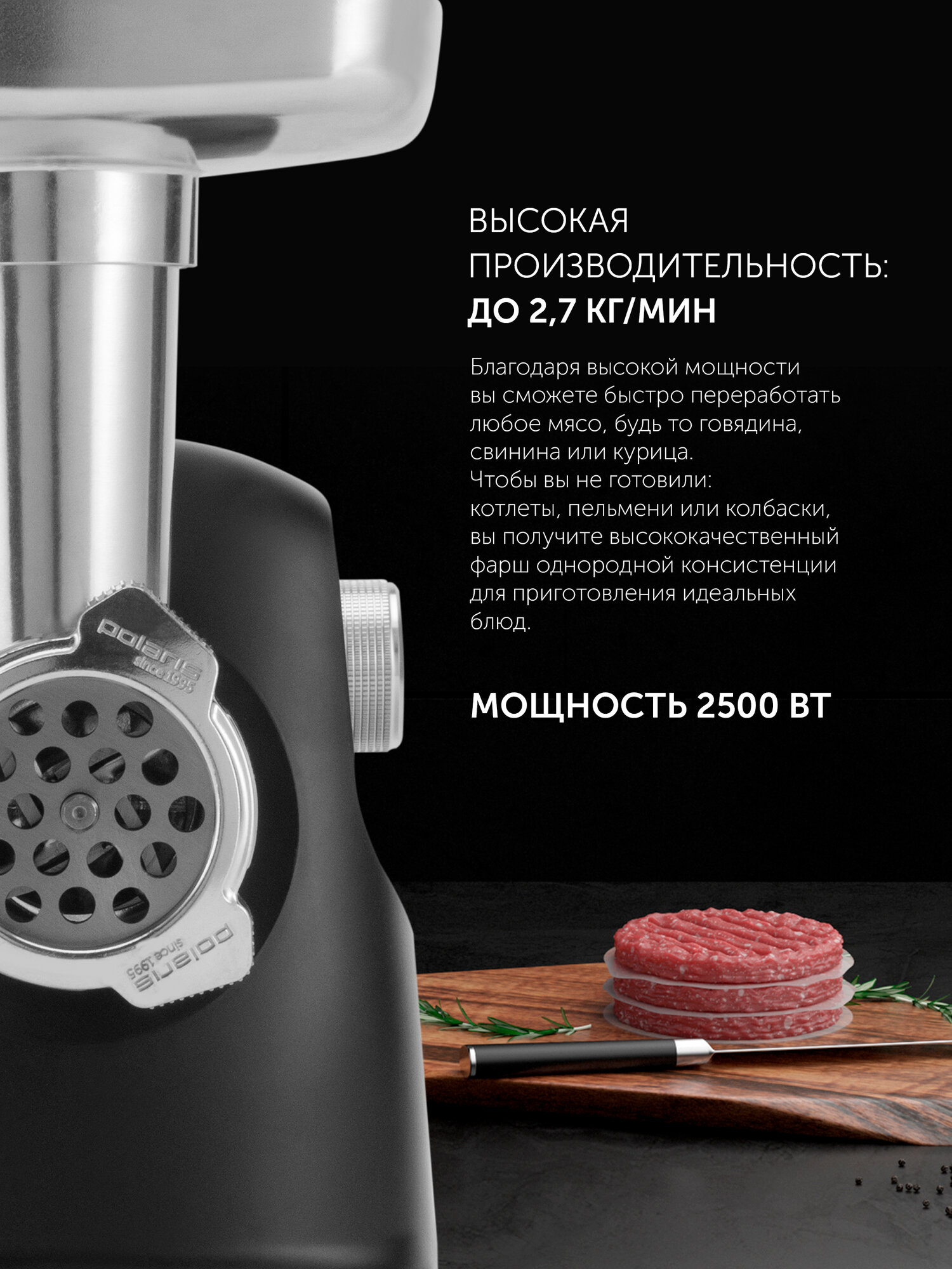 Не тратьте время на утомительное ручное перемалывание мяса! С электромясорубкой Polaris PMG 2582 приготовление фарша станет быстрым и приятным процессом. Наслаждайтесь вкусными и полезными блюдами, приготовленными своими руками!
