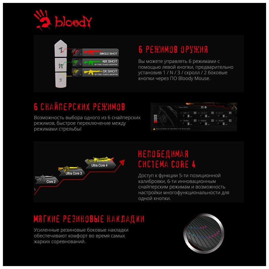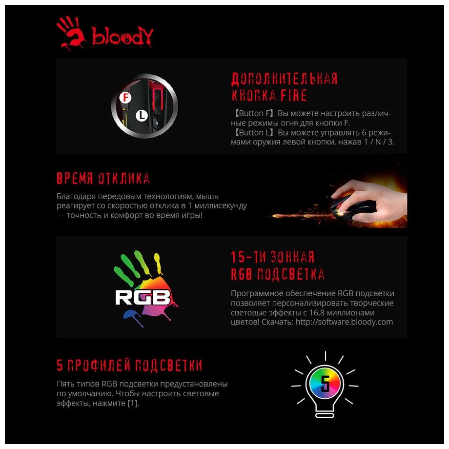 Мышь A4Tech Bloody J90S – это не просто инструмент, это продолжение вашей руки, позволяющее вам полностью раскрыть свой игровой потенциал. Ощутите новый уровень контроля и точности с этой надежной и стильной игровой мышью!
