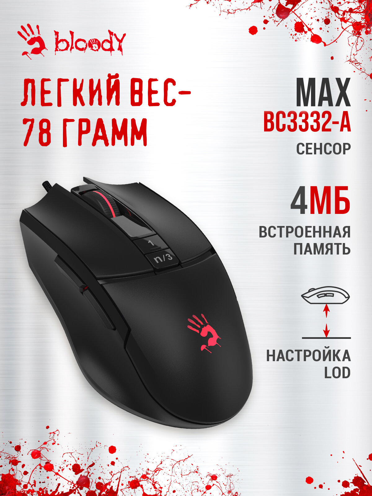 Погрузись в мир невероятной точности и комфорта с мышью A4Tech Bloody L65 Max! Этот геймерский манипулятор создан для тех, кто ценит скорость, отзывчивость и бескомпромиссное качество. Независимо от того, новичок ты или опытный киберспортсмен, эта мышь станет твоим верным союзником в любой игре.