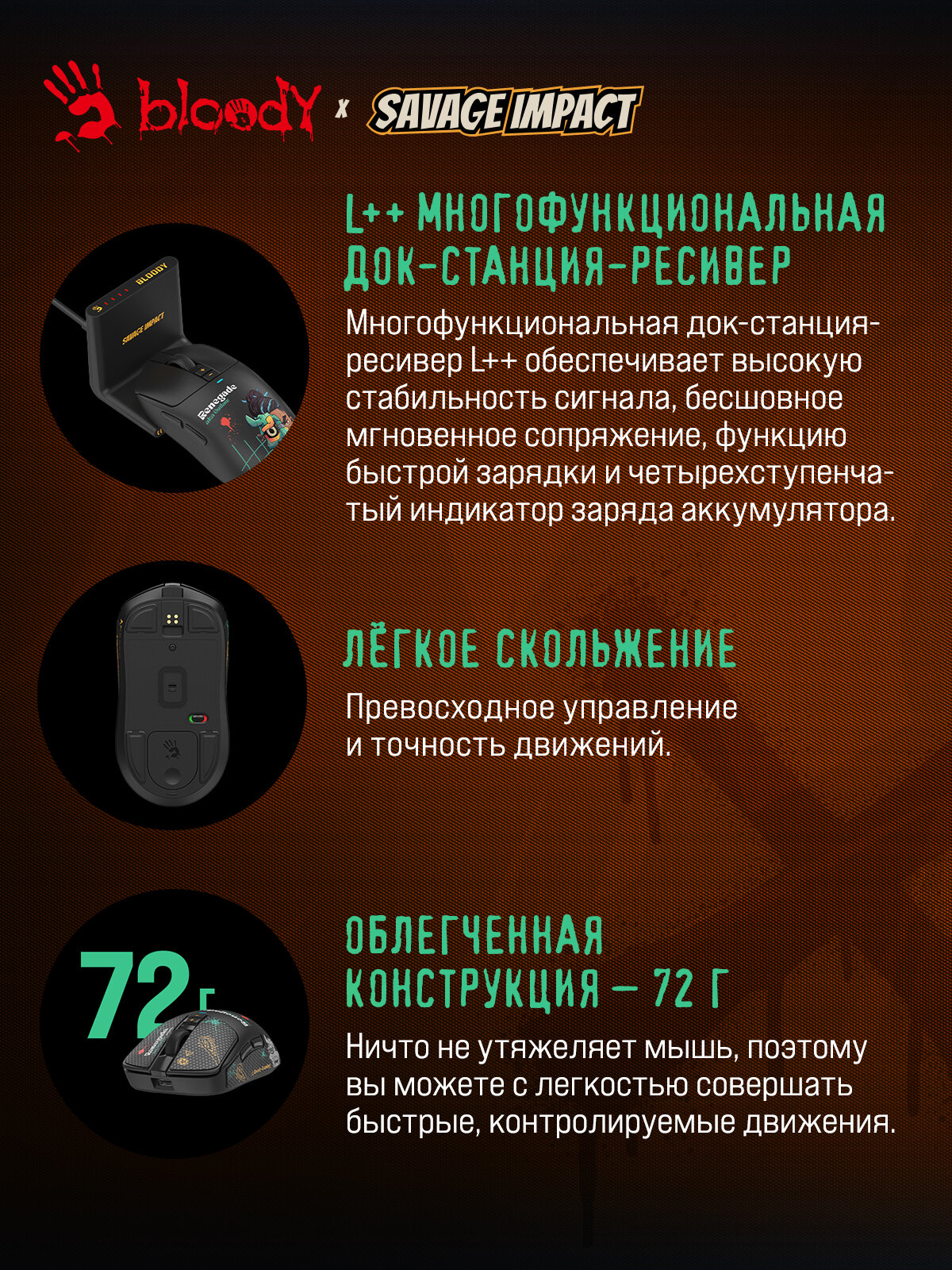 Забудьте о задержках и ограничениях, присущих проводным решениям. A4Tech Bloody R72 Ultra Duo обеспечивает мгновенный отклик и превосходную свободу движений, позволяя полностью погрузиться в игровой процесс. Беспроводное соединение по USB гарантирует стабильную и надежную связь, а продуманная эргономика обеспечивает комфорт даже во время самых продолжительных игровых сессий.