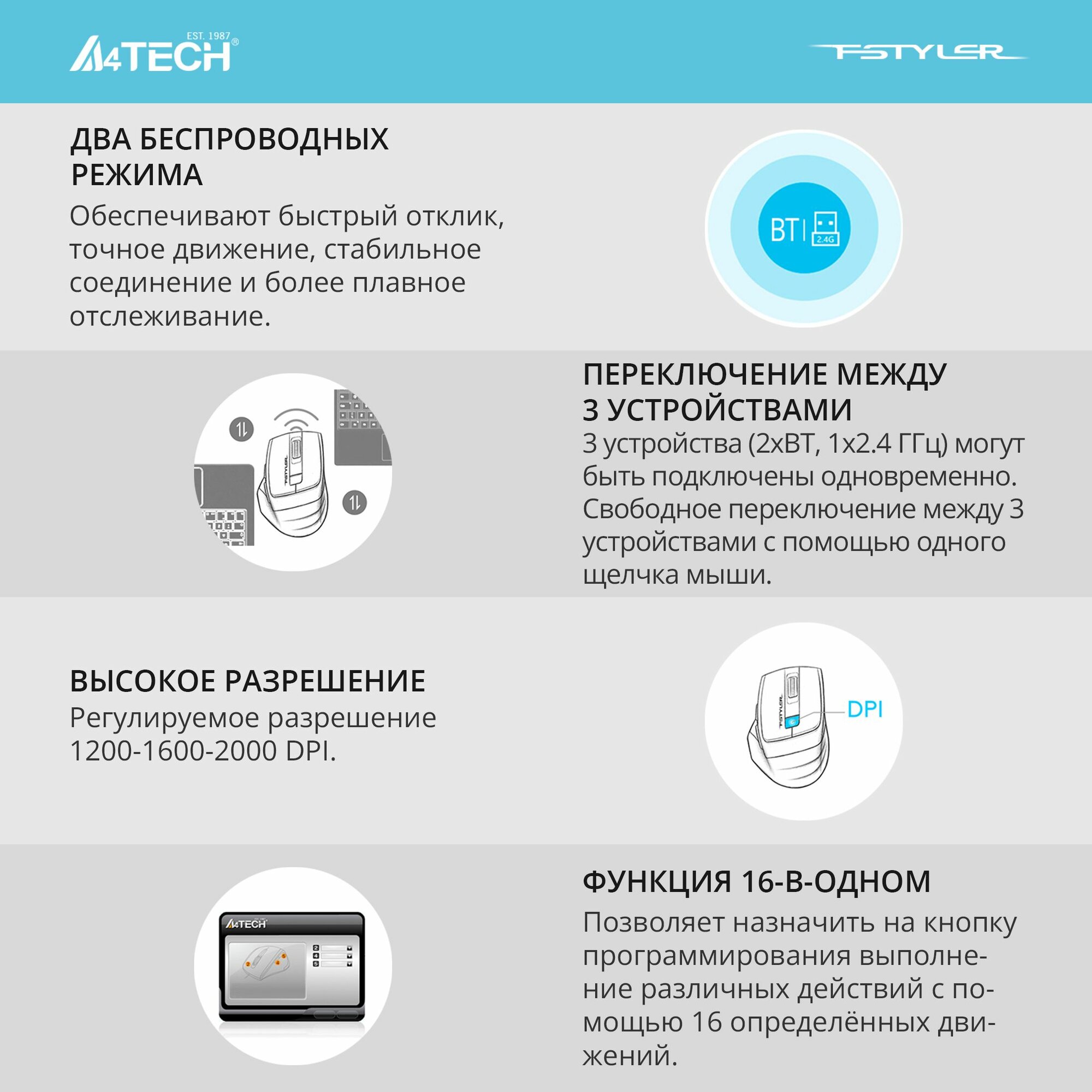 С мышью A4Tech Fstyler FB35S работа станет удовольствием! Почувствуйте разницу!