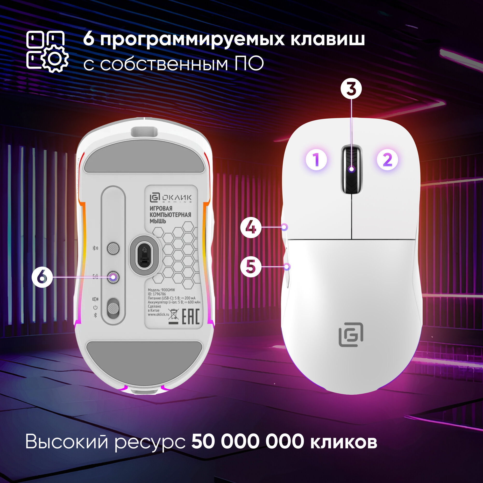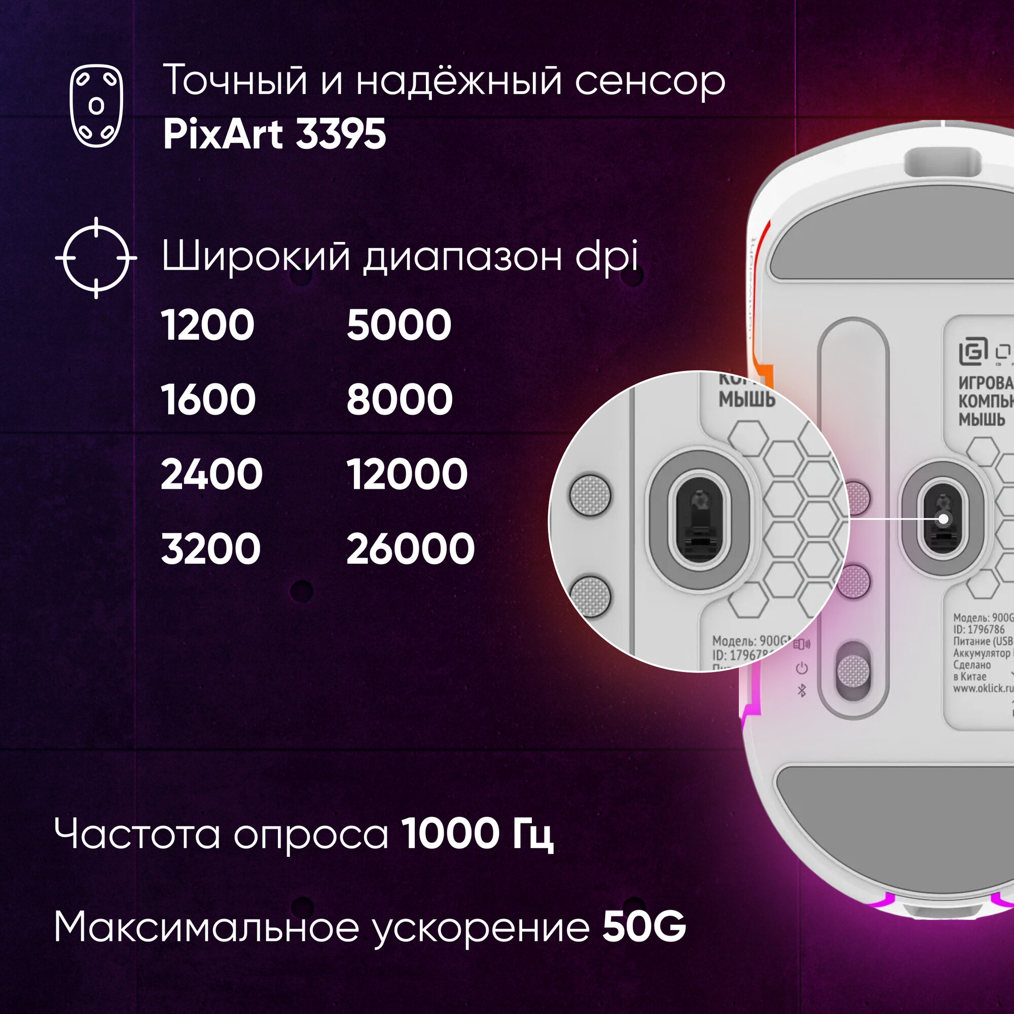 Приготовьтесь к захватывающим игровым сессиям и невероятным достижениям с белой беспроводной мышью Oklick 900GMW. Она станет вашим незаменимым инструментом для достижения победы в любой игре!