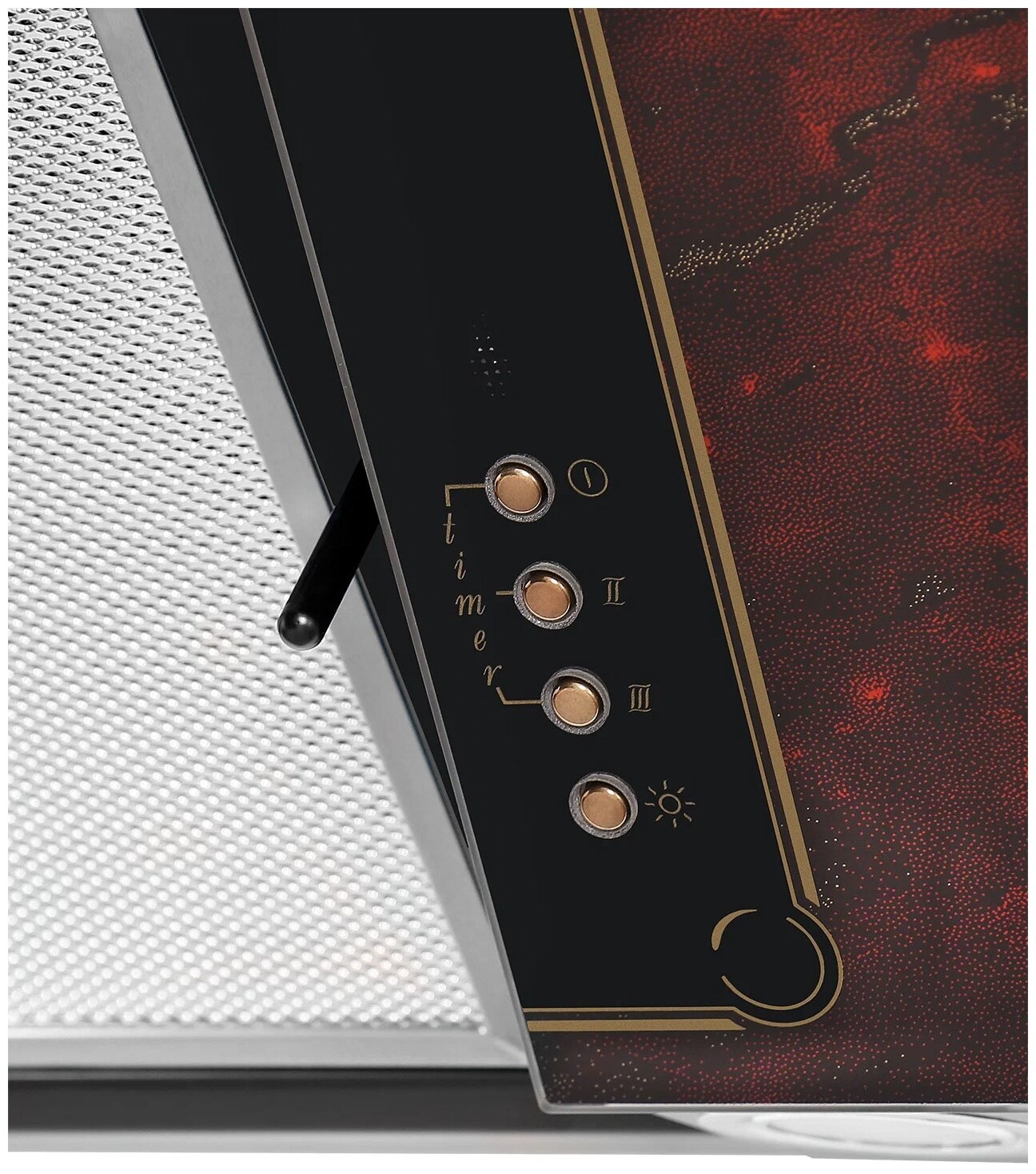 Наклонная конструкция вытяжки обеспечивает комфорт во время приготовления пищи, не загораживая обзор и предоставляя достаточно пространства над плитой. Это особенно удобно для людей высокого роста. Эргономичное расположение панели управления позволяет легко выбирать нужный режим работы и интенсивность вентиляции.