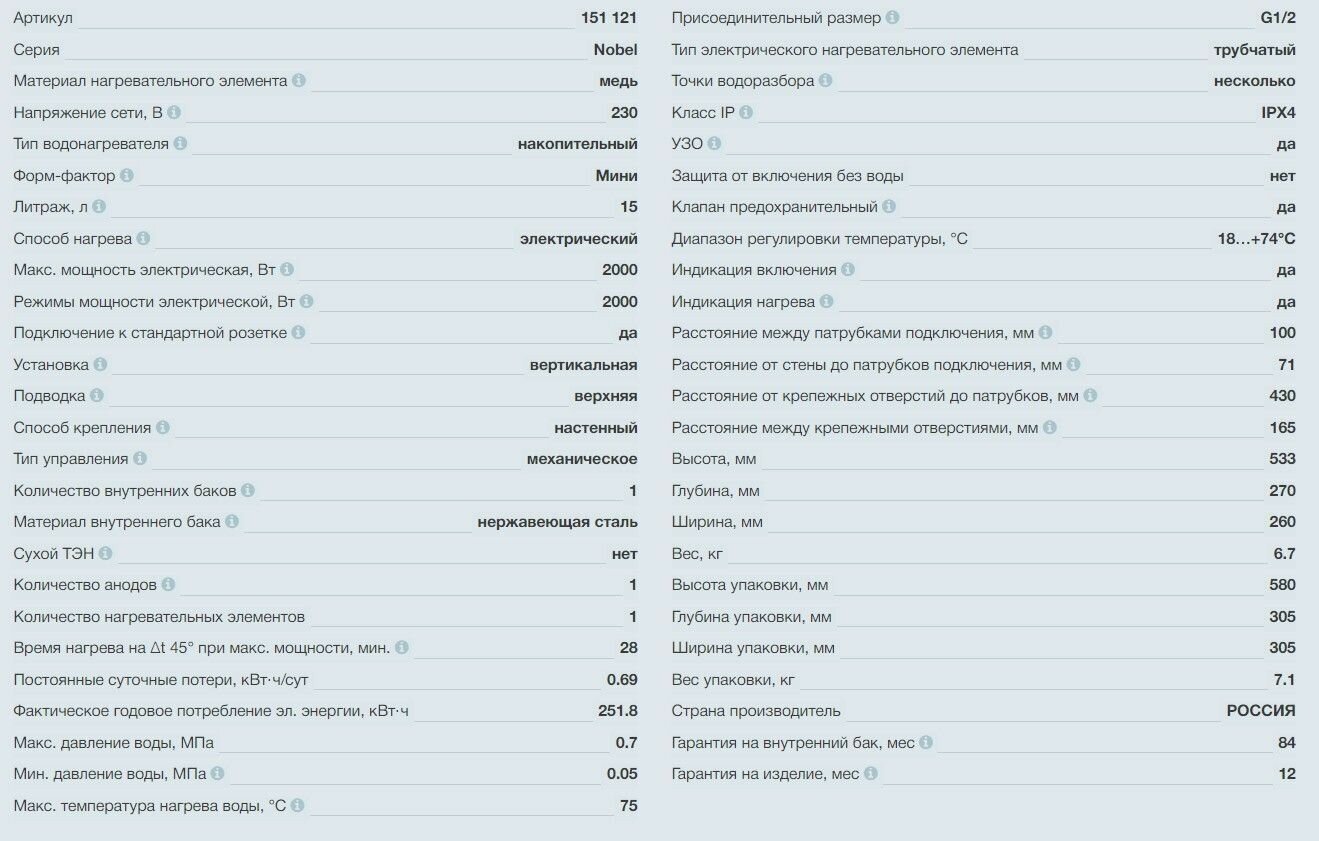 Thermex Nobel N-15 U – это не просто водонагреватель, это инвестиция в ваш комфорт и удобство. Он станет незаменимым помощником в вашем доме, обеспечивая бесперебойное горячее водоснабжение в любое время года. Забудьте о проблемах с отсутствием горячей воды и наслаждайтесь комфортной жизнью!