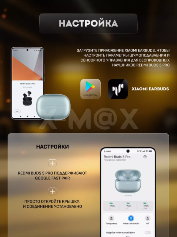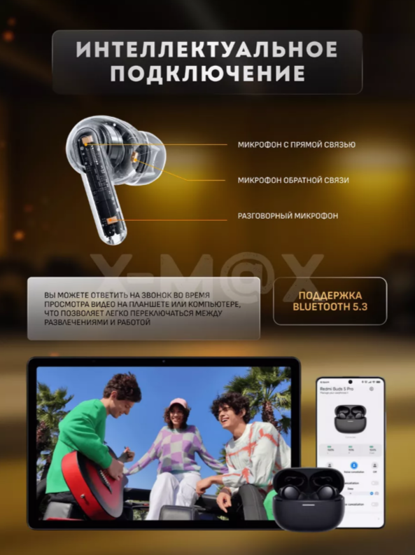 Почувствуйте свободу движения без проводов и наслаждайтесь любимой музыкой, подкастами или аудиокнигами в высоком качестве. Благодаря передовой системе активного шумоподавления (ANC), вы сможете полностью погрузиться в мир звука, отгородившись от окружающего шума и посторонних звуков. Путешествуете ли вы в общественном транспорте, работаете в шумном офисе или просто хотите отдохнуть дома, Redmi Buds 5 Pro помогут вам создать личное пространство, наполненное только тем, что вы хотите слышать.