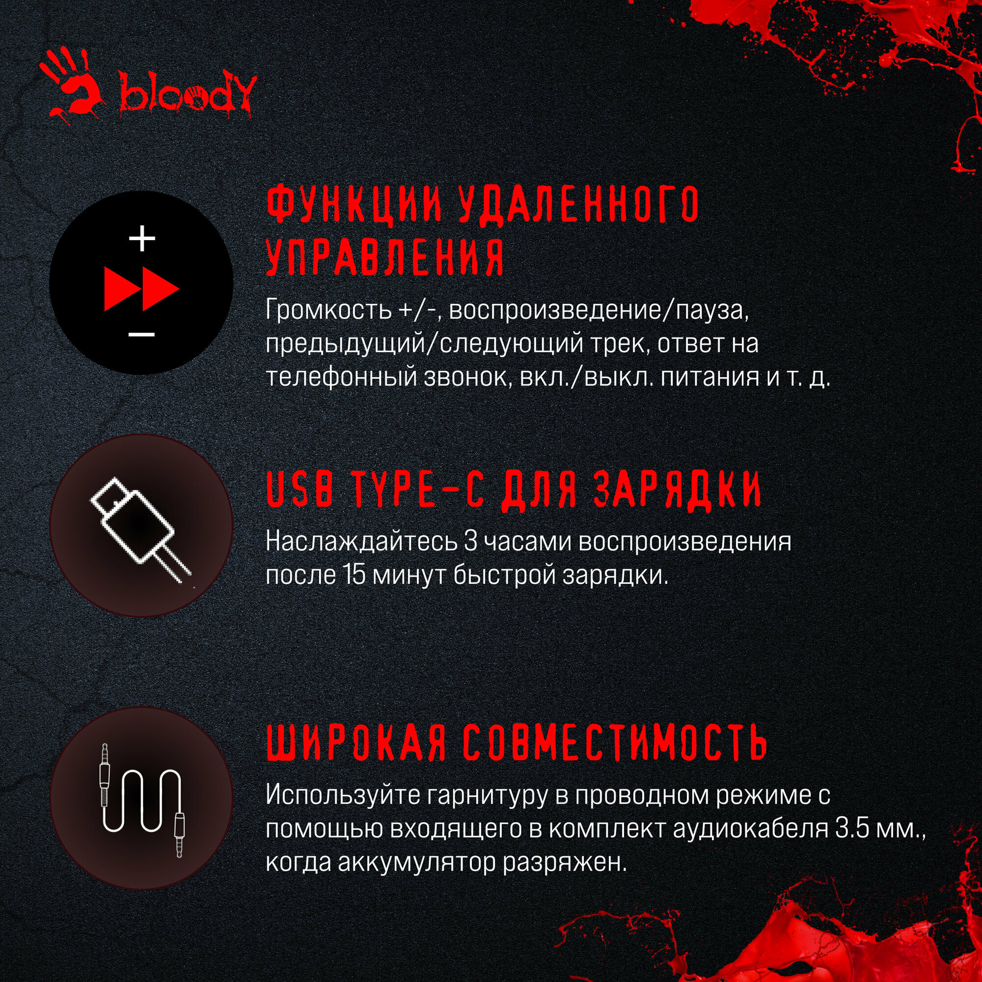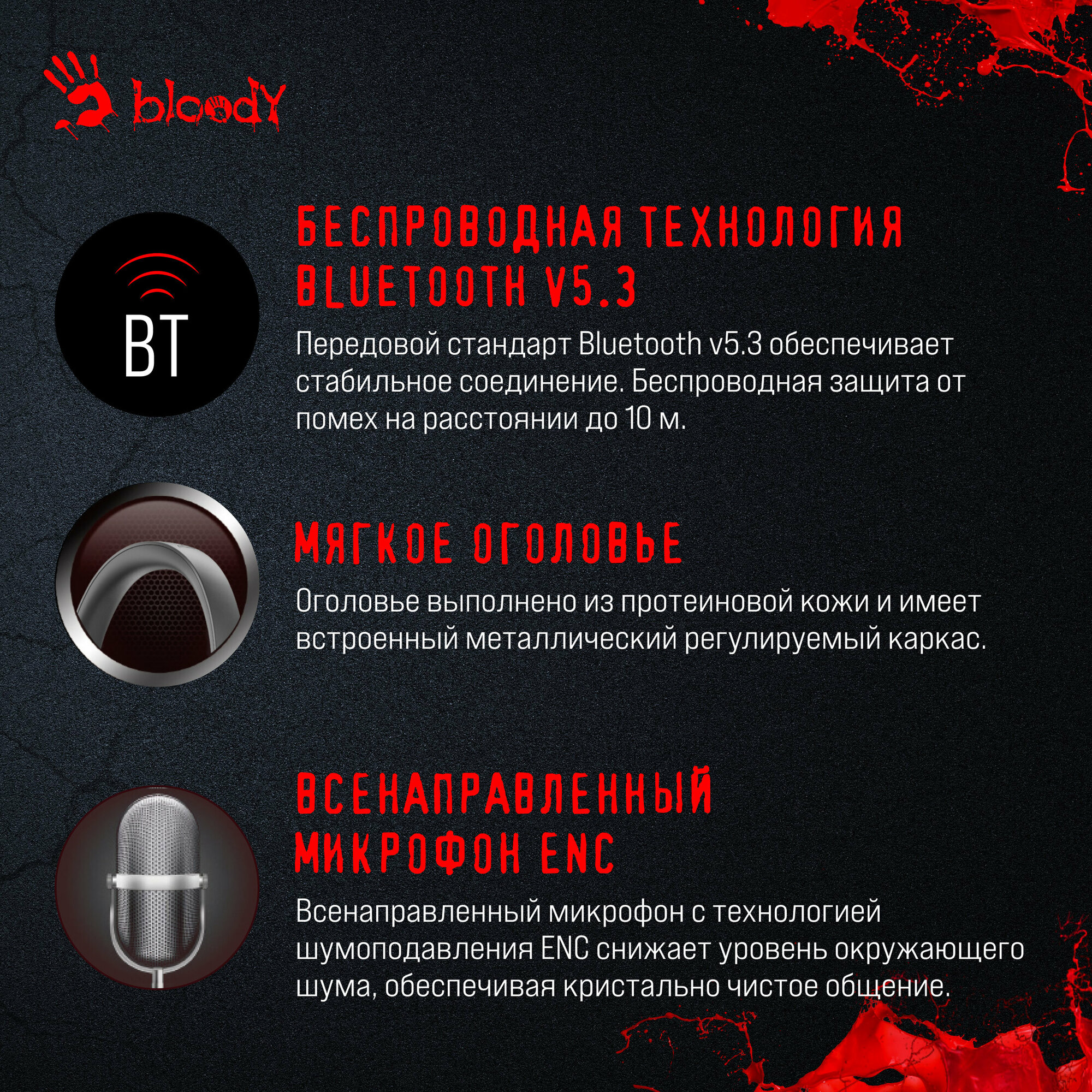 Беспроводные накладные наушники A4Tech Bloody MH390 – это идеальный выбор для тех, кто ценит качество звука, комфорт и свободу. Закажите их прямо сейчас и откройте для себя новый уровень звукового наслаждения!