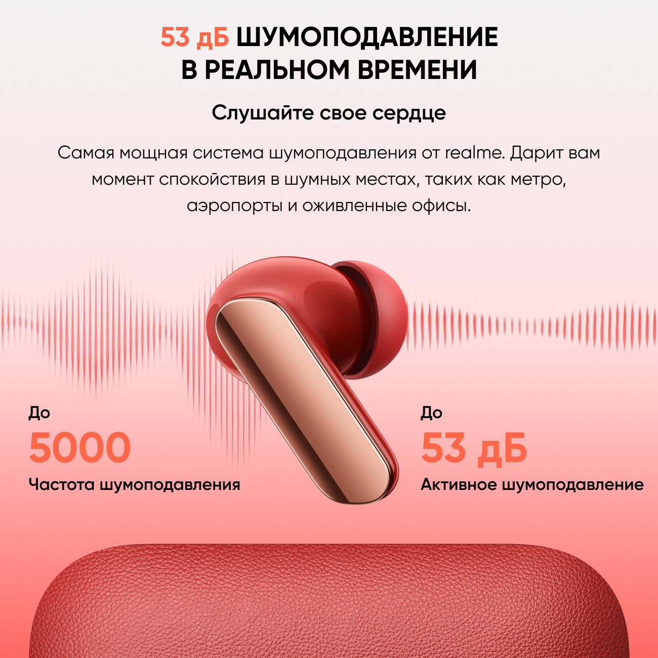 Забудьте о внешнем шуме и погрузитесь в мир музыки с Realme Buds Air 7 Pro. Красный цвет добавит ярких красок в ваш образ, а превосходное качество звука подарит незабываемые впечатления.