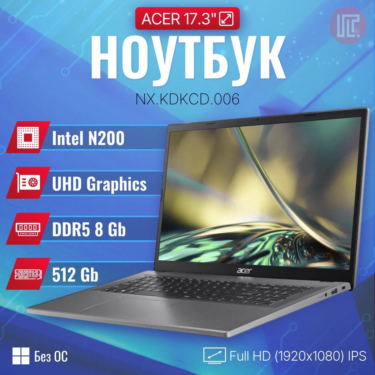 Большой экран: 17.3-дюймовый дисплей идеально подходит для тех, кто много работает с текстом, графикой или видео. Большой экран обеспечивает комфортный просмотр контента и снижает нагрузку на глаза.