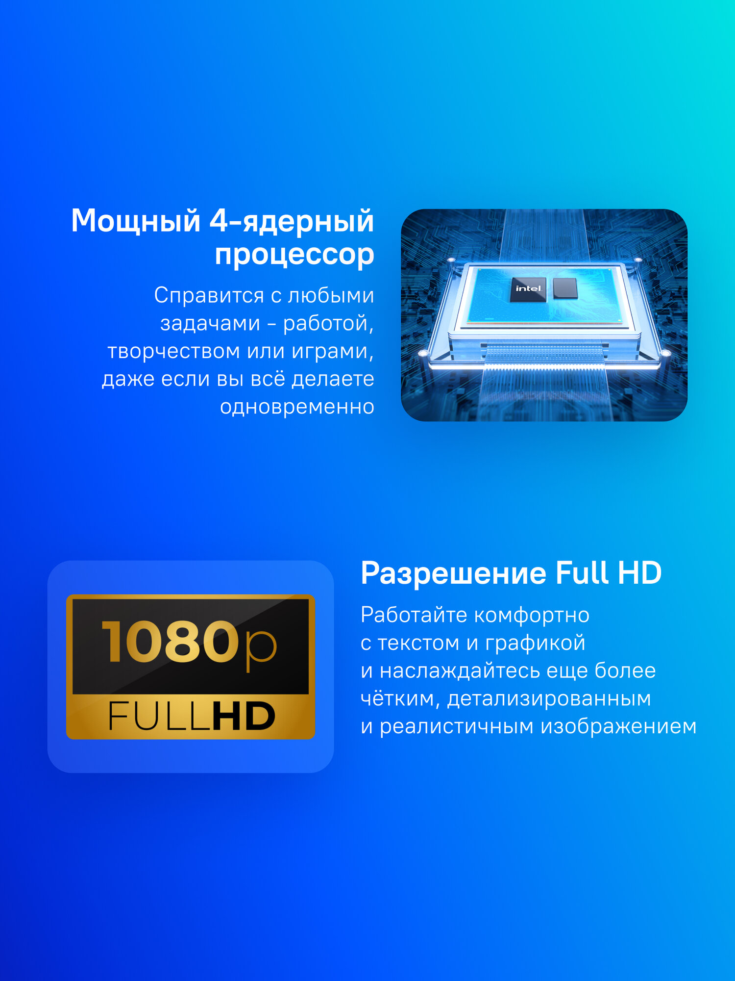 Яркий и четкий IPS-дисплей позволит вам наслаждаться качественным изображением с широкими углами обзора. Работайте с графикой, смотрите фильмы и фотографии с комфортом, где бы вы ни находились.