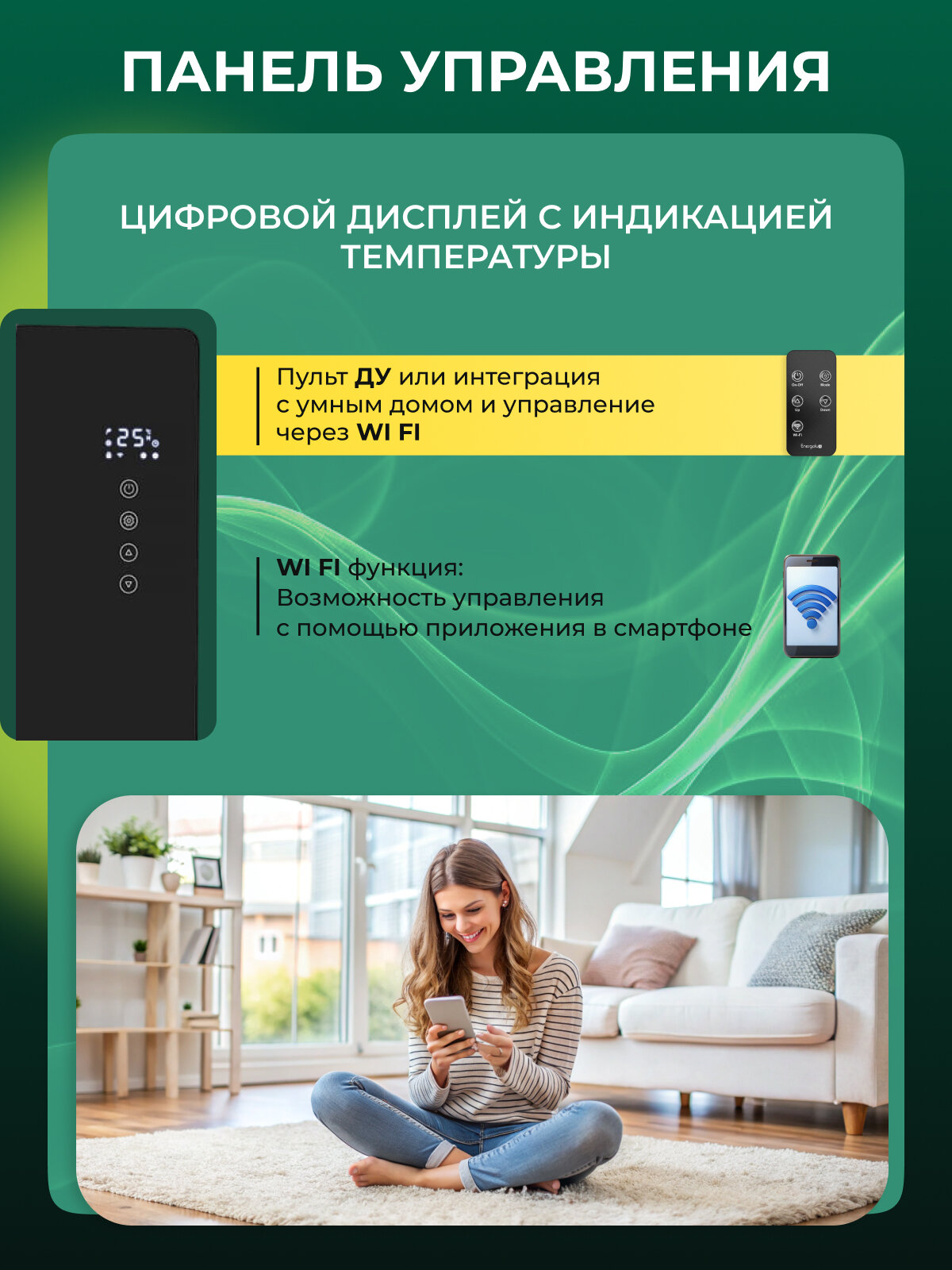 Благодаря своей конструкции, конвектор обеспечивает быстрый и равномерный прогрев воздуха. Вы почувствуете тепло практически мгновенно после включения. Удобное управление, включая возможность дистанционного управления через Wi-Fi, позволит вам поддерживать оптимальную температуру в доме, где бы вы ни находились.