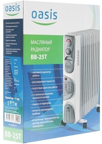 Ищете надежный и эффективный способ обогреть свой дом или офис в холодное время года? Масляный обогреватель Oasis BB-25T с 11 секциями и тепловентилятором – это идеальное решение для создания комфортной температуры в любом помещении.