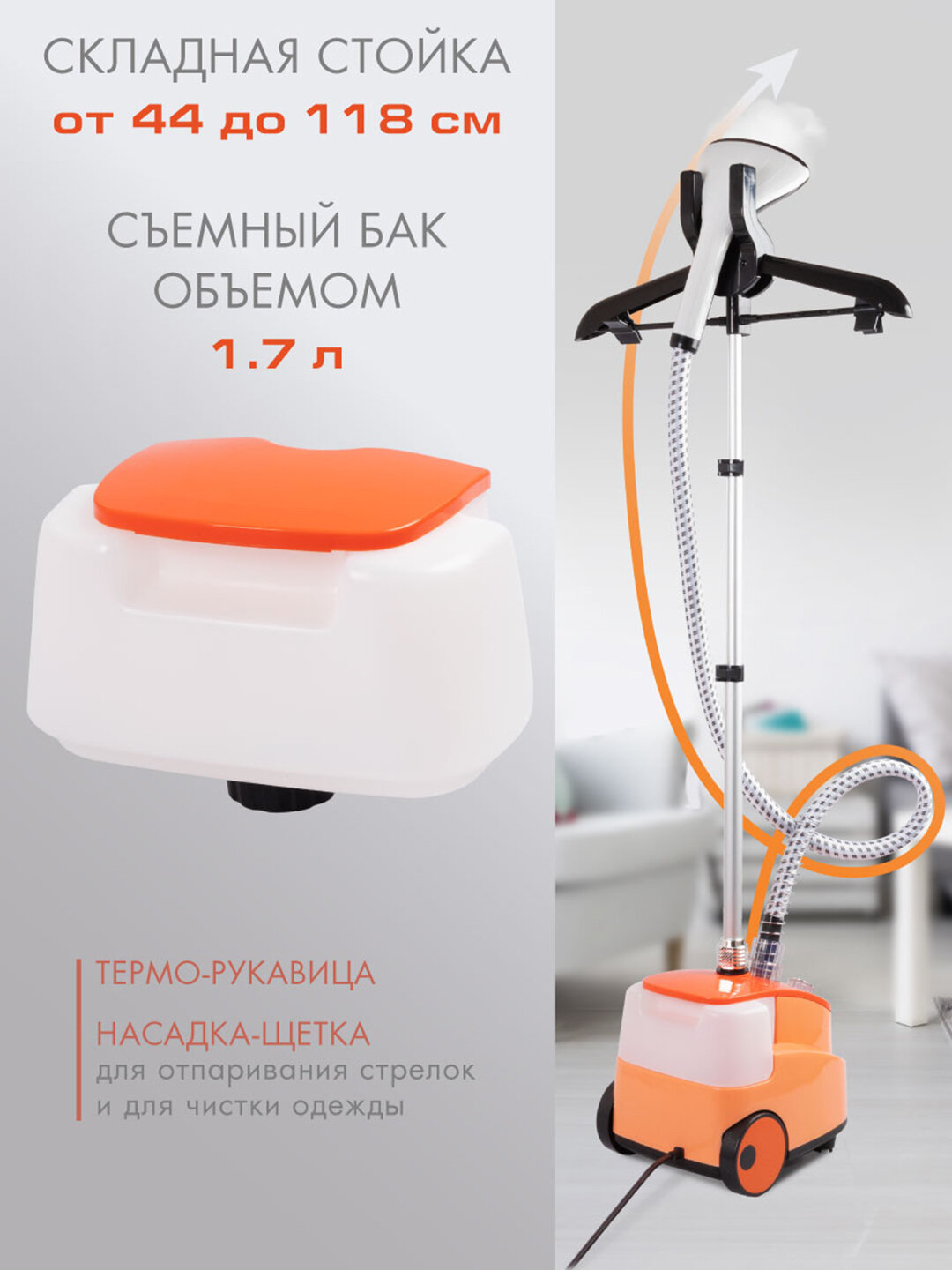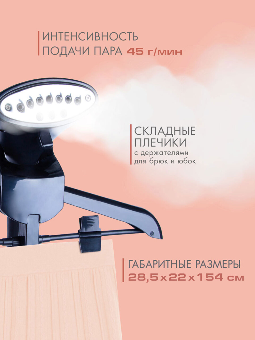 Благодаря большому резервуару для воды, вы сможете отпаривать большое количество вещей без необходимости частой доливки. Это особенно удобно, когда вам нужно быстро привести в порядок несколько нарядов перед важным мероприятием или рабочей неделей. Вертикальная конструкция позволяет легко обрабатывать даже длинные вещи, такие как платья, пальто и шторы.