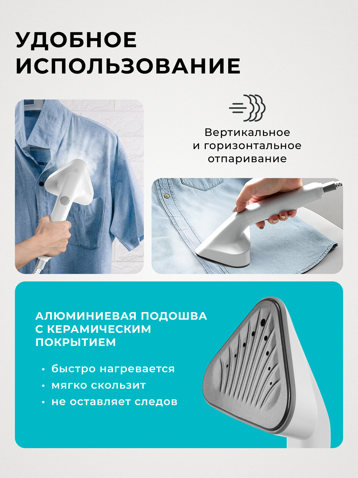 Простота использования и компактный дизайн делают этот отпариватель идеальным решением для дома и путешествий. Он быстро нагревается, готов к работе за считанные секунды, и легко помещается в багаж. Вы всегда сможете выглядеть безупречно, где бы вы ни находились!