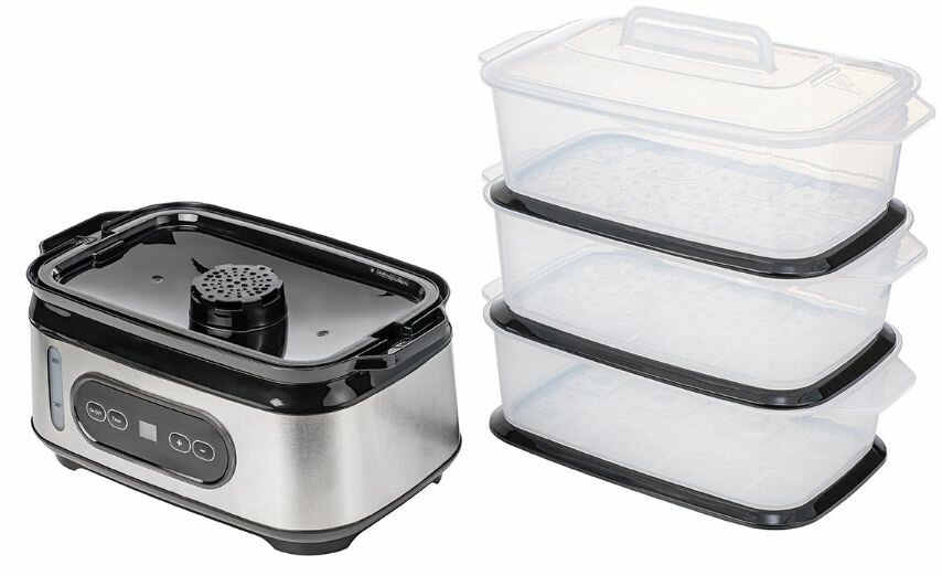 Благодаря нескольким уровням приготовления, вы сможете готовить несколько блюд одновременно, экономя время и усилия. Просто поместите продукты в контейнеры, установите таймер и занимайтесь своими делами, пока пароварка готовит вкусный и полезный обед или ужин. По завершении приготовления, прибор автоматически выключится, обеспечивая безопасность и удобство использования.