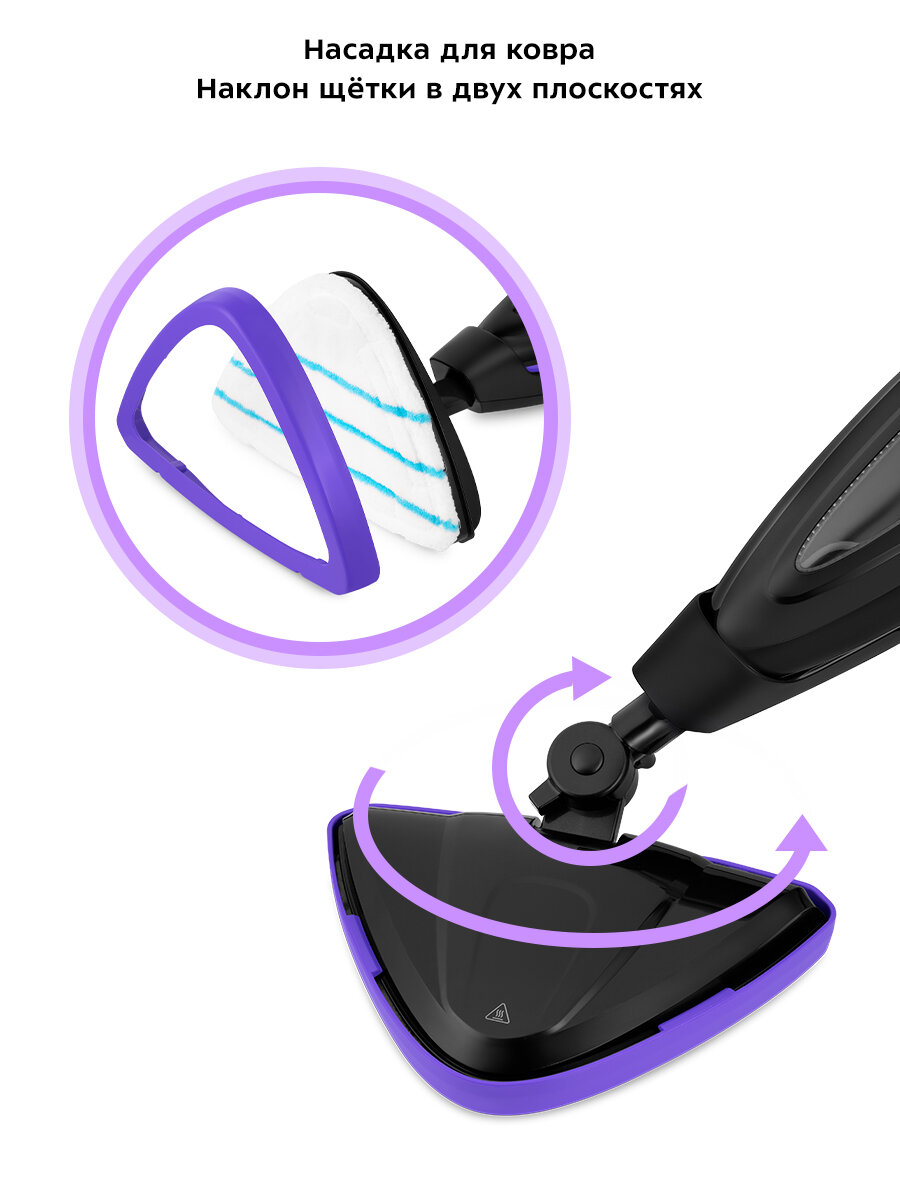 Эта универсальная швабра сочетает в себе несколько функций, позволяя вам сэкономить время и силы на уборке. Благодаря мощному потоку пара, она легко справляется с загрязнениями на различных поверхностях, от твердых полов до ковров и даже одежды.