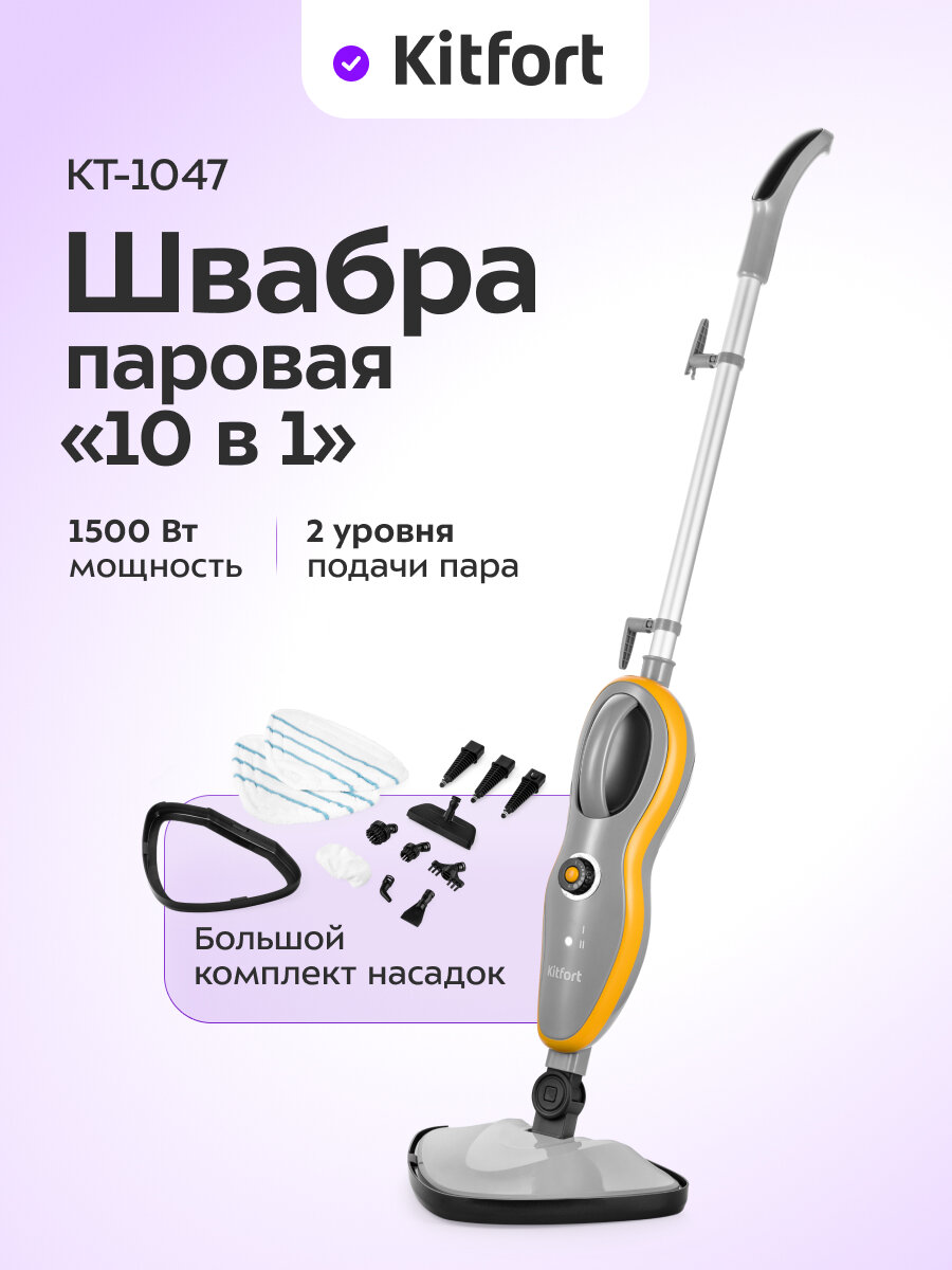Сделайте уборку легкой и приятной с паровой шваброй Kitfort KT-1047! Наслаждайтесь чистотой и свежестью в вашем доме каждый день. Закажите прямо сейчас и почувствуйте разницу!