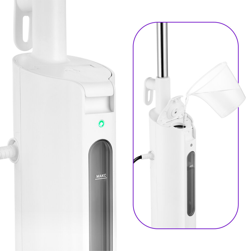 Легкая и маневренная, эта паровая швабра легко проникает даже в труднодоступные места, такие как углы и пространство под мебелью. Вам больше не придется напрягать спину и прилагать чрезмерные усилия, чтобы достичь идеальной чистоты.