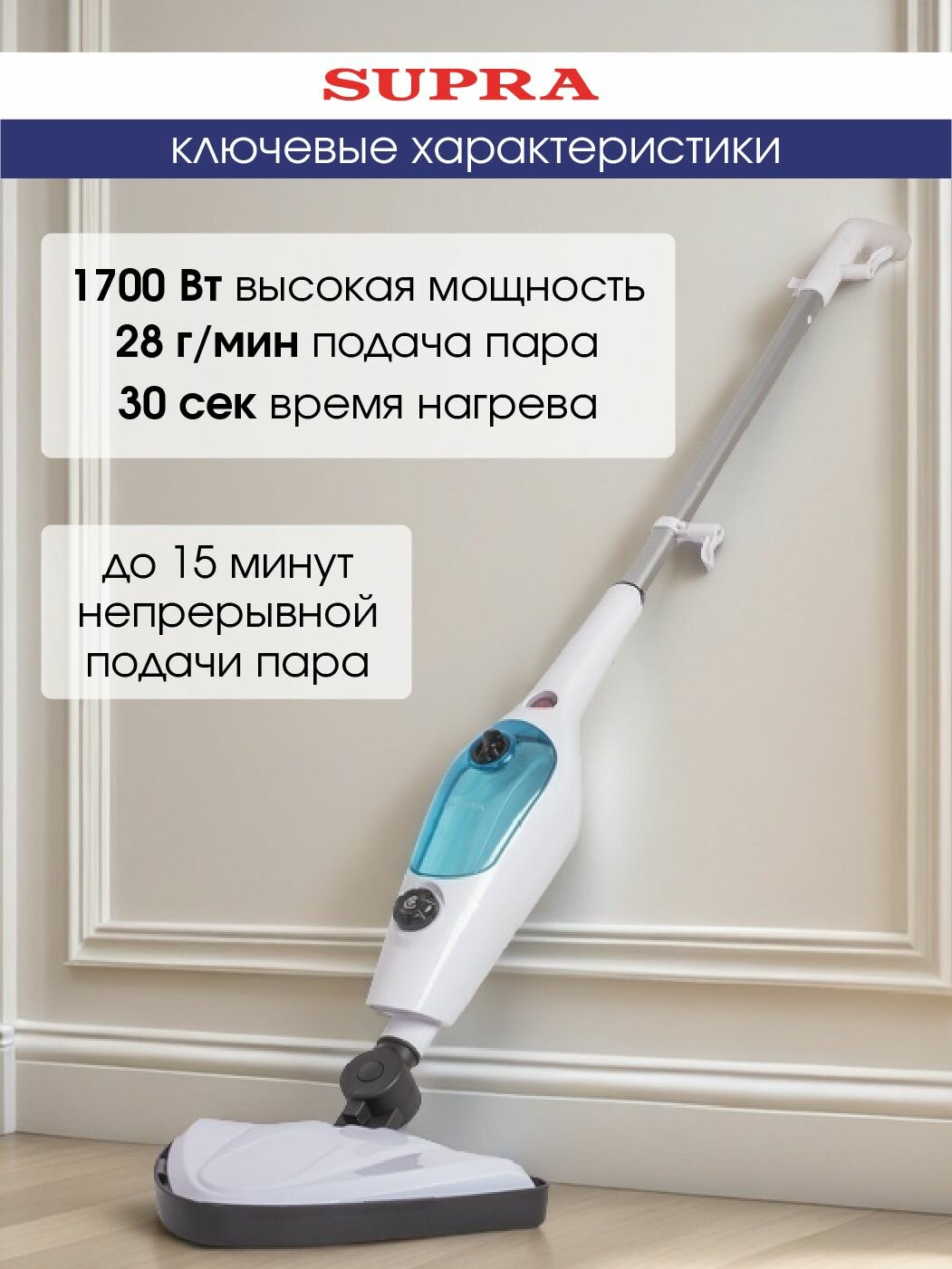 Забудьте о грязных тряпках и утомительной ручной уборке! Почувствуйте разницу с паровой шваброй Supra SMS-305. Подарите себе и своему дому безупречную чистоту и свежесть!