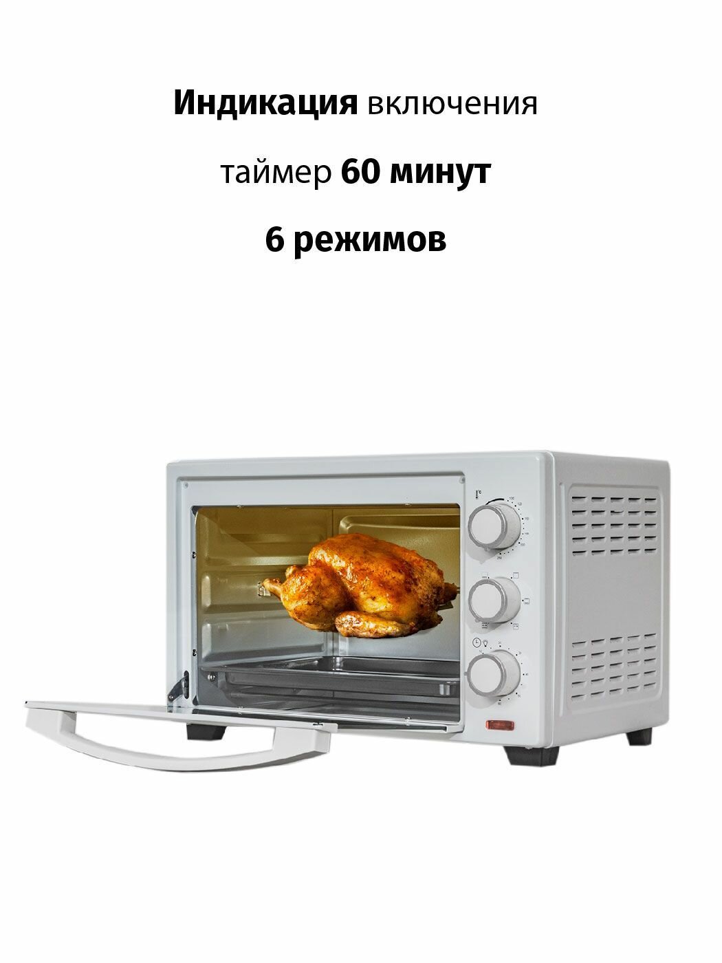 Благодаря нескольким режимам работы, вы сможете легко подобрать оптимальные условия для каждого блюда. Запекайте мясо и птицу, готовьте пиццу с хрустящей корочкой, выпекайте пироги и кексы – возможности этой мини-печи практически безграничны.