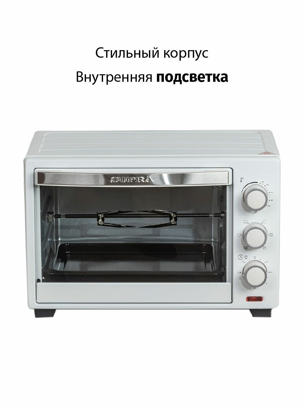 Мини-печь Supra MTS-2595 оснащена функцией гриля, что позволит вам приготовить аппетитные блюда с золотистой корочкой. А наличие вертела открывает новые горизонты для кулинарных экспериментов – попробуйте приготовить сочного цыпленка-гриль прямо у себя дома!