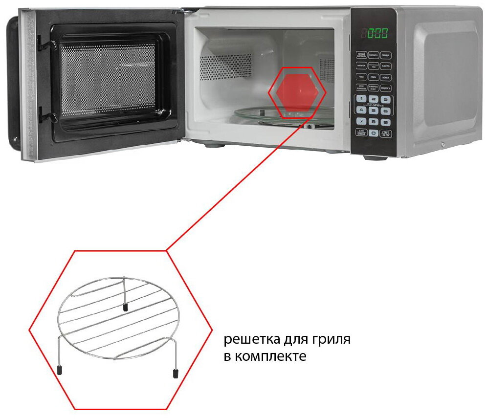 Эта микроволновка станет незаменимым помощником в разогреве готовых блюд, размораживании продуктов и даже приготовлении простых рецептов. Она сочетает в себе стильный дизайн и интуитивно понятное управление, что делает ее идеальным решением для любой кухни.