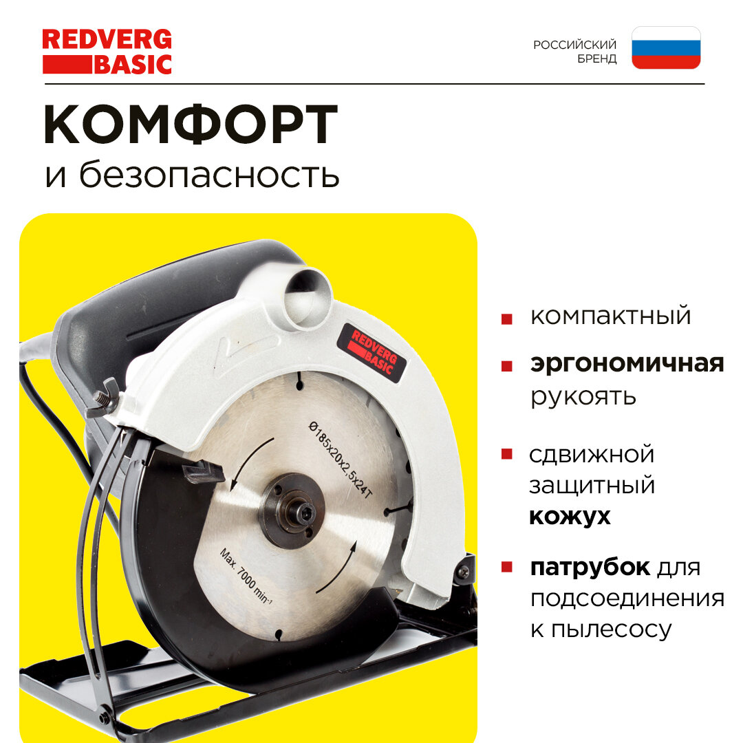 Почувствуйте уверенность в каждом движении и наслаждайтесь результатом! Закажите дисковую пилу RedVerg Basic CS65 прямо сейчас и откройте для себя новые возможности в работе с деревом!