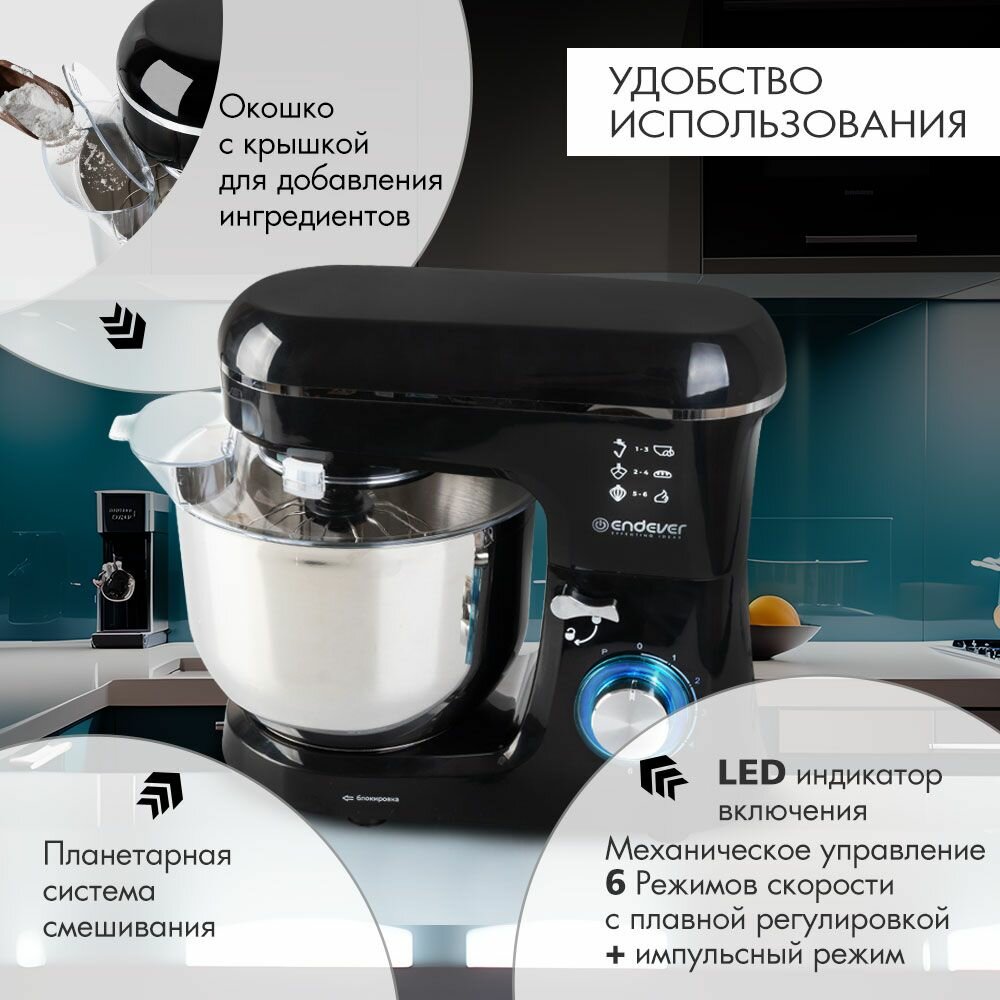 Забудьте о рутинной работе на кухне! Позвольте планетарному миксеру ENDEVER Sigma-120 взять на себя самые трудоемкие процессы, а вы наслаждайтесь творчеством и радуйте своих близких вкусными блюдами.