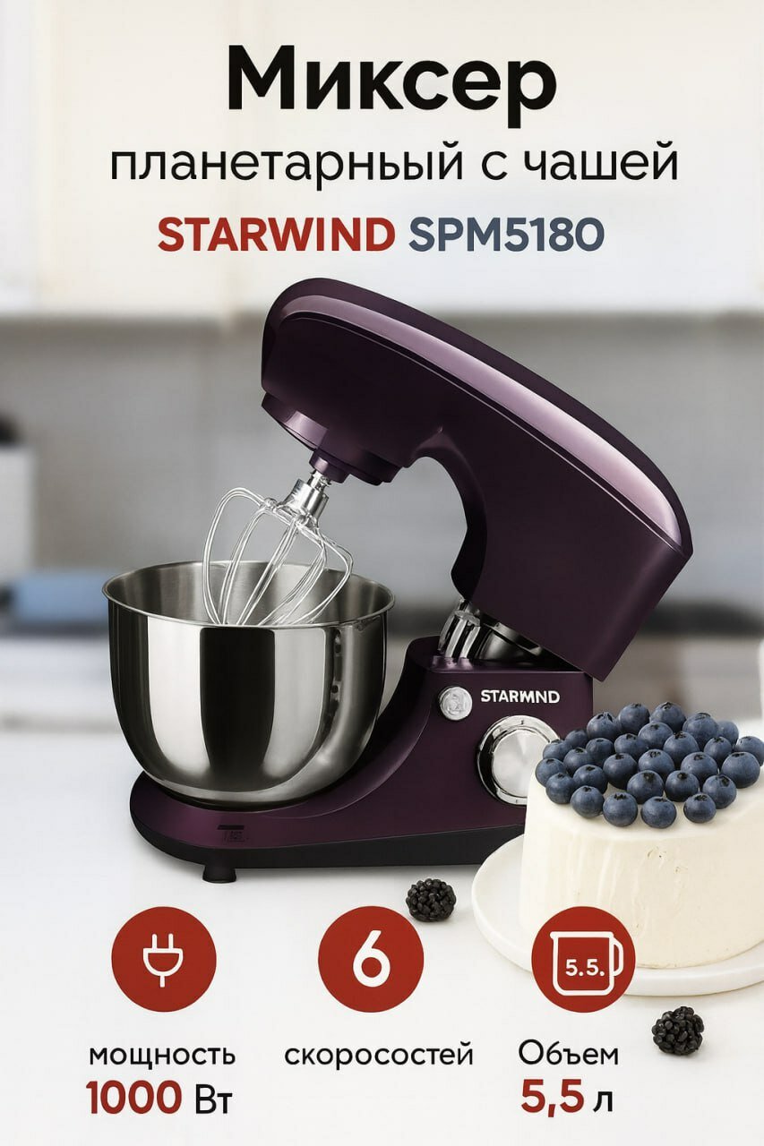 Закажите планетарный миксер Starwind SPM5180 прямо сейчас и наслаждайтесь простым и эффективным процессом приготовления ваших любимых блюд!