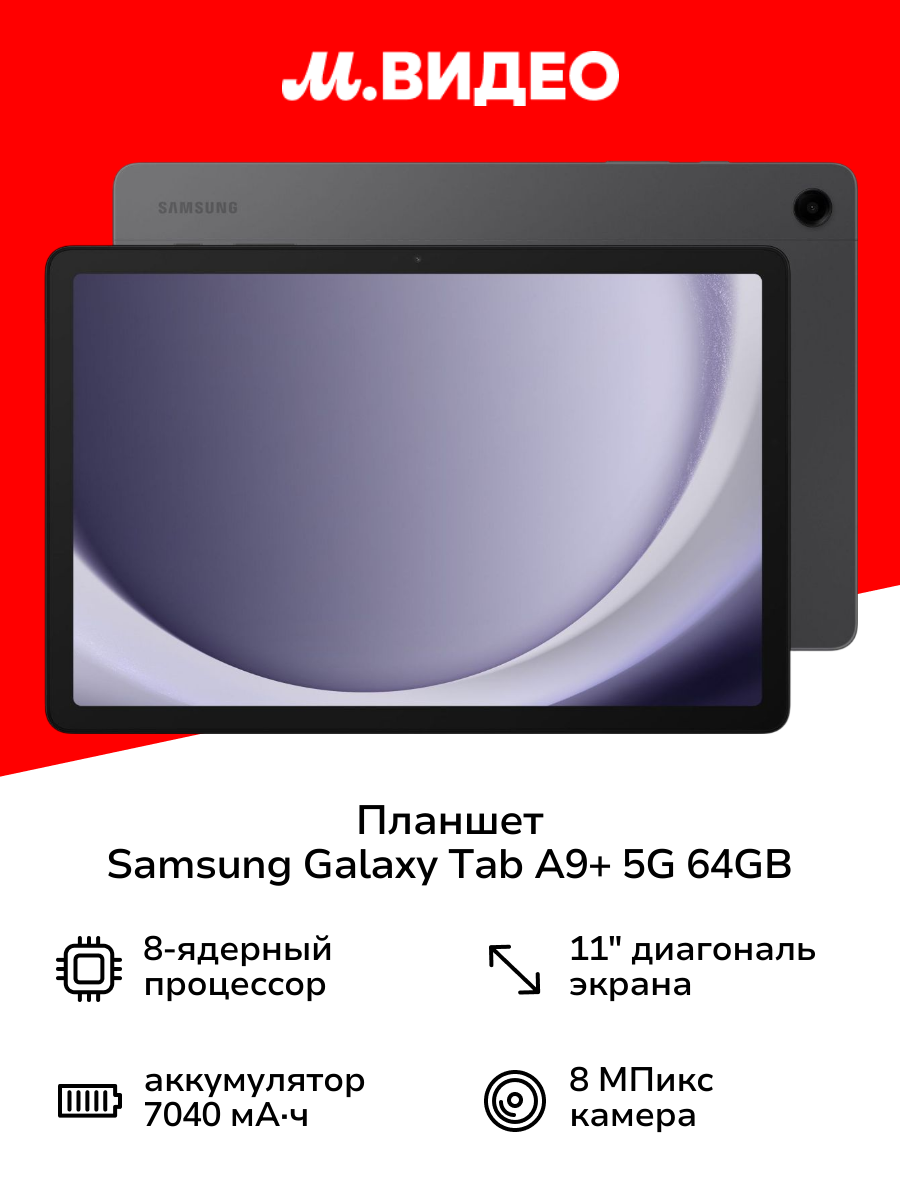 Не упустите возможность купить Samsung Galaxy Tab A9 5G в графитовом цвете с 64GB памяти прямо сейчас! Закажите его в нашем интернет-магазине и получите быструю доставку и выгодную цену. Почувствуйте мощность и свободу с Samsung Galaxy Tab A9 5G!