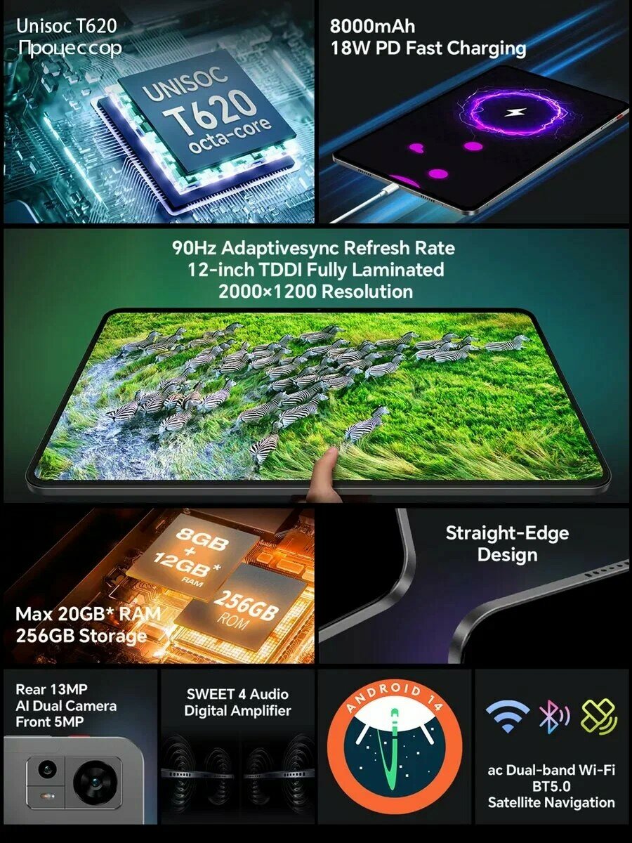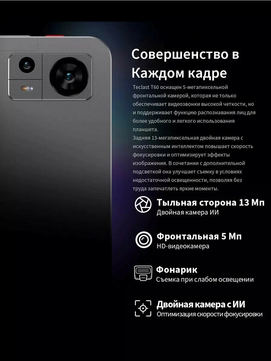 Этот планшет станет идеальным выбором для студентов, бизнесменов, геймеров и всех, кто ценит комфорт и функциональность. Teclast T60 – это инвестиция в вашу продуктивность и развлечения.