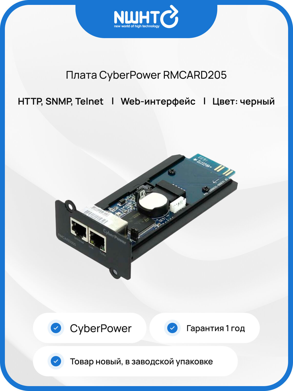 CyberPower RM Card 205 позволяет осуществлять удаленный контроль и мониторинг состояния ИБП через сеть Ethernet, используя протоколы SNMP и HTTP. Это дает возможность оперативно реагировать на любые изменения в работе оборудования, предотвращая потенциальные сбои и минимизируя время простоя.