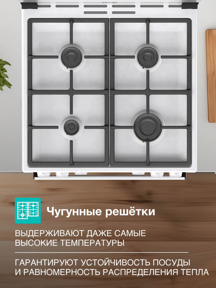 Благодаря сочетанию газовой варочной панели и электрической духовки, вы получаете полный контроль над процессом приготовления. Наслаждайтесь быстрым нагревом газовых конфорок и безупречным результатом выпечки в электрической духовке.