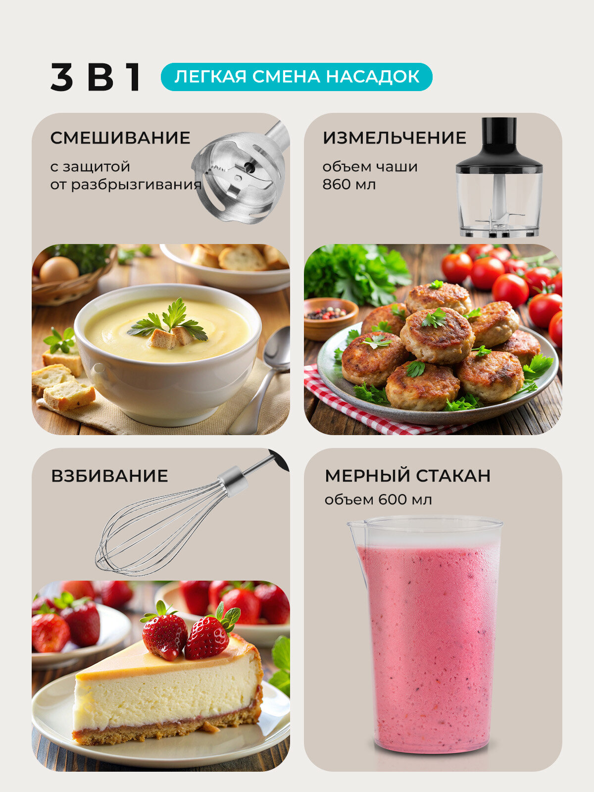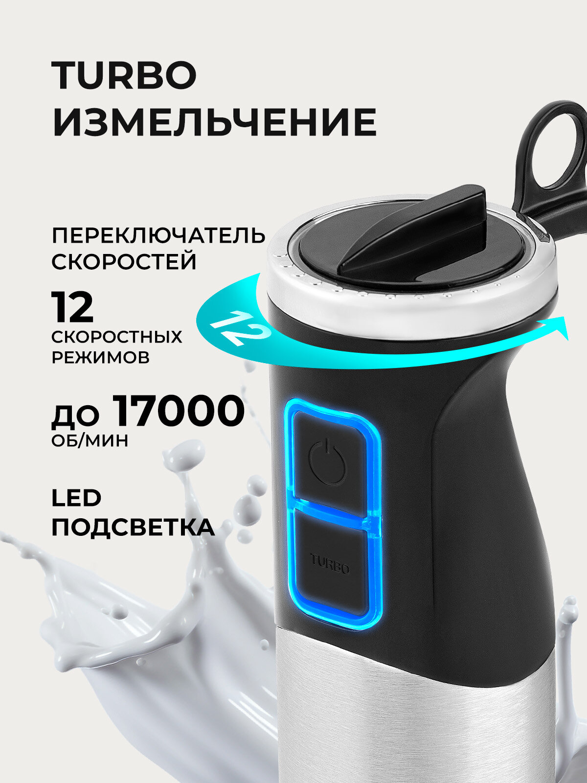 Эргономичный дизайн и удобная ручка обеспечивают комфортное использование блендера. Благодаря плавной регулировке скорости вы сможете подобрать оптимальный режим для каждого продукта, добиваясь идеального результата. А яркая LED-подсветка рабочей зоны добавит удобства в процессе приготовления даже в условиях недостаточного освещения.