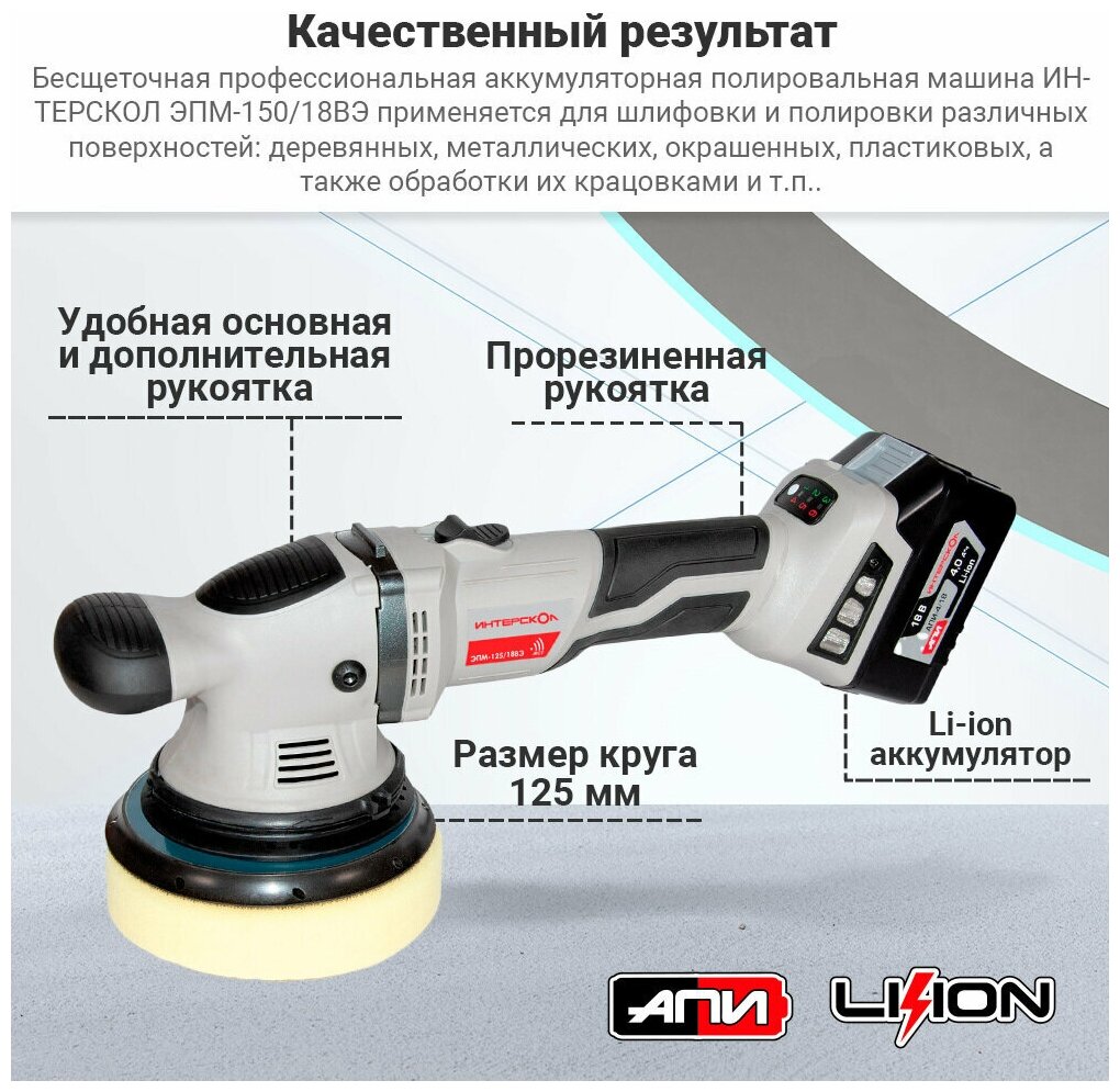 Закажите свою эксцентриковую полировальную машину Интерскол ЭПМ-125/18ВЭ прямо сейчас и наслаждайтесь безупречным блеском ваших поверхностей!