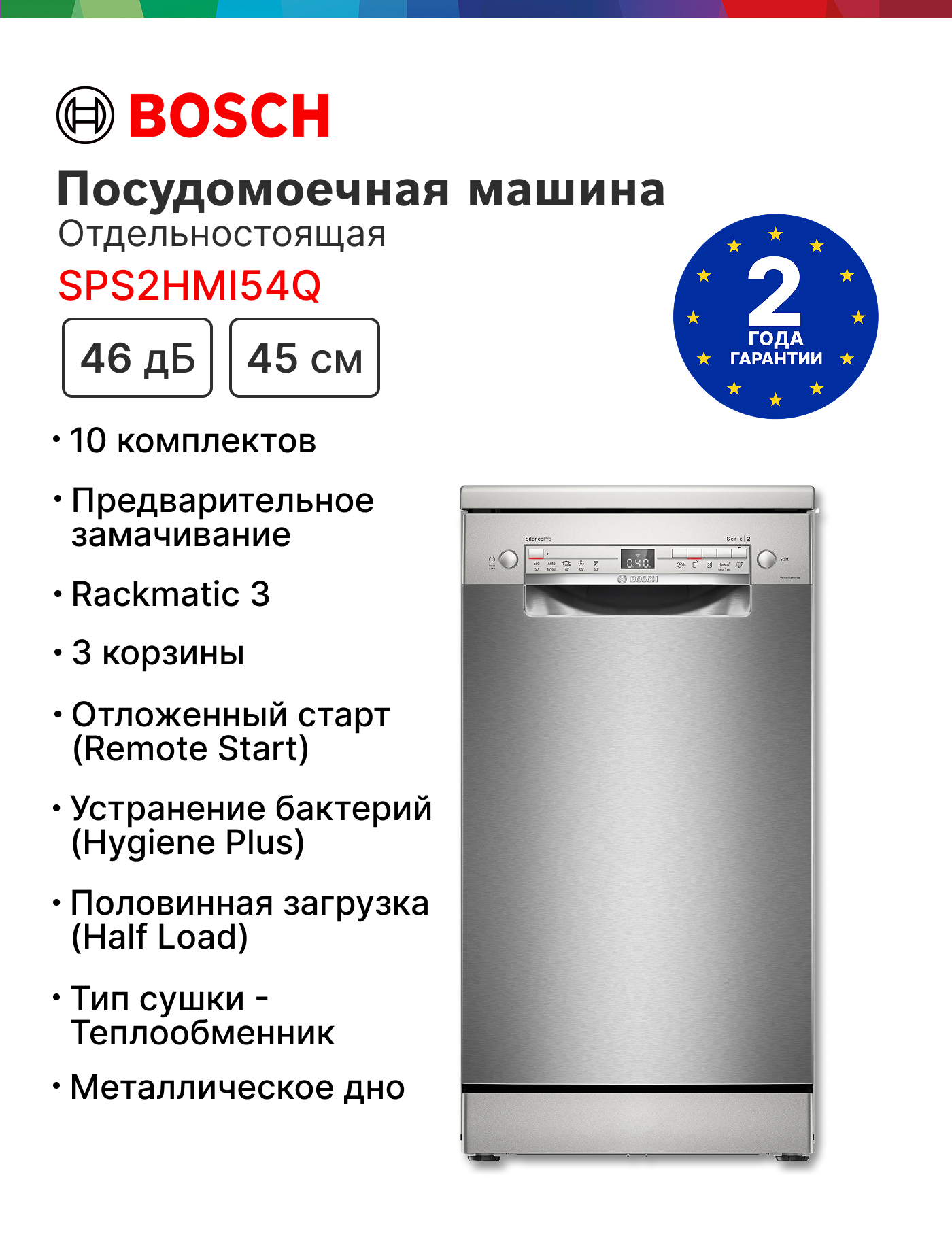 Безопасность превыше всего! Bosch SPS2HMI54Q оснащена надежной защитой от протечек, которая предотвратит затопление вашей кухни и убережет вас от неприятностей.