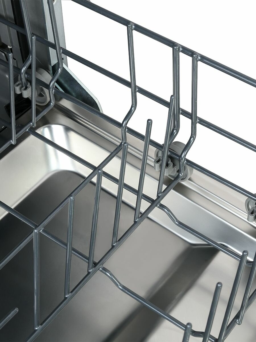 Эта модель рассчитана на 10 комплектов посуды, что делает ее отличным выбором для семей среднего размера. Удобная конструкция с 4 корзинами обеспечивает оптимальное размещение тарелок, кастрюль, столовых приборов и других кухонных принадлежностей. Вы сможете эффективно использовать каждый уровень, оптимизируя загрузку и добиваясь безупречного результата.
