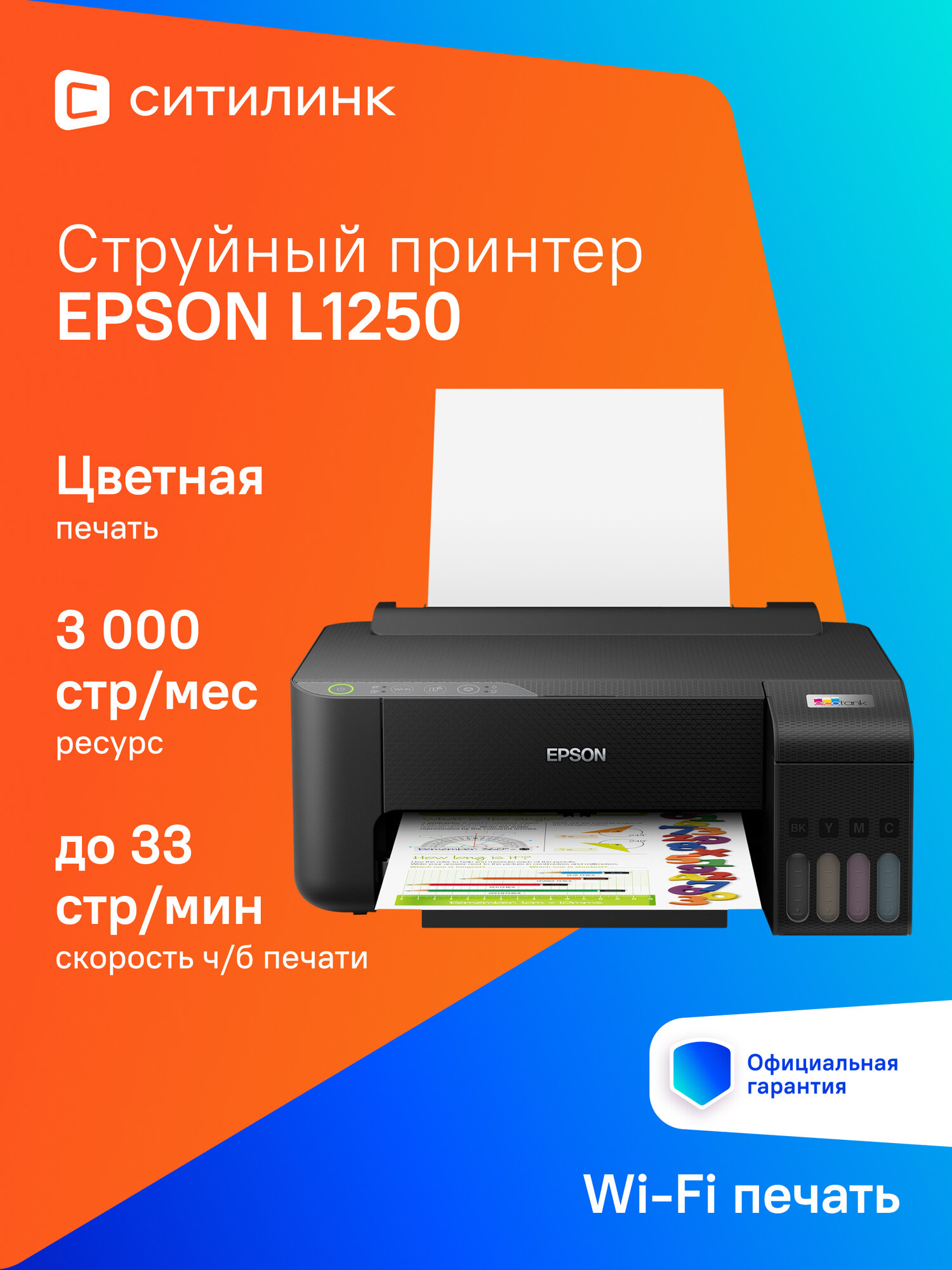 Приобретите струйный принтер Epson L1250 с СНПЧ сегодня и оцените все преимущества экономичной и качественной печати!