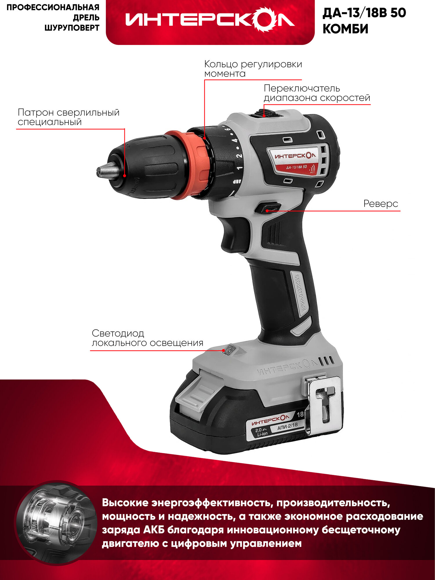 Ищете надежный и мощный инструмент для выполнения широкого спектра задач? Профессиональная дрель-шуруповерт Interskol DA-13/18V-50 Комби – это идеальное решение как для профессионалов, так и для домашних мастеров. Этот инструмент сочетает в себе передовые технологии, высокую производительность и долговечность, обеспечивая комфорт и эффективность в работе.