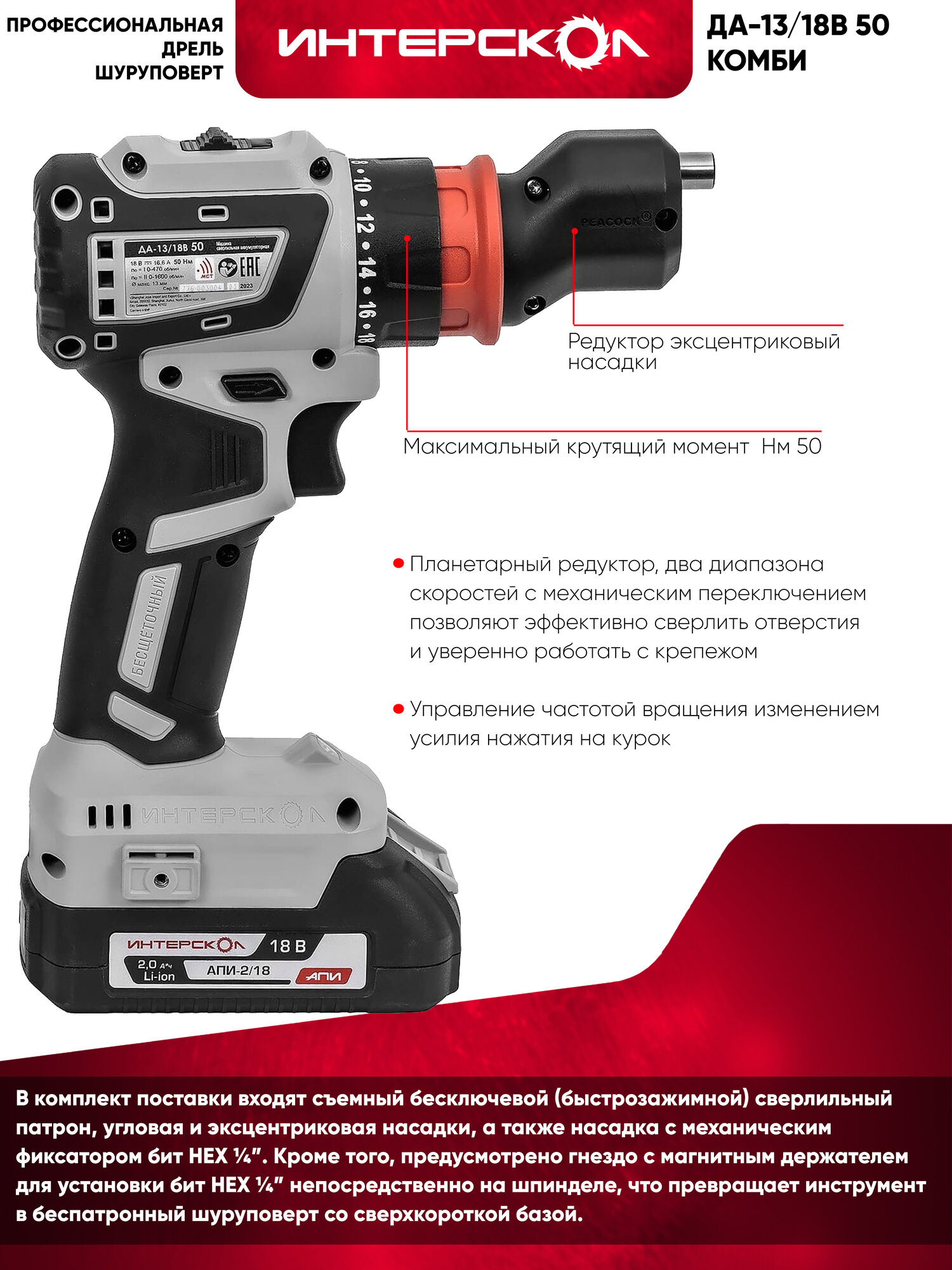 Interskol DA-13/18V-50 Комби – это не просто инструмент, это ваш надежный помощник в реализации самых смелых проектов. Независимо от того, занимаетесь ли вы строительством, ремонтом, сборкой мебели или другими задачами, эта дрель-шуруповерт обеспечит вам мощность, точность и надежность, необходимые для достижения отличных результатов.