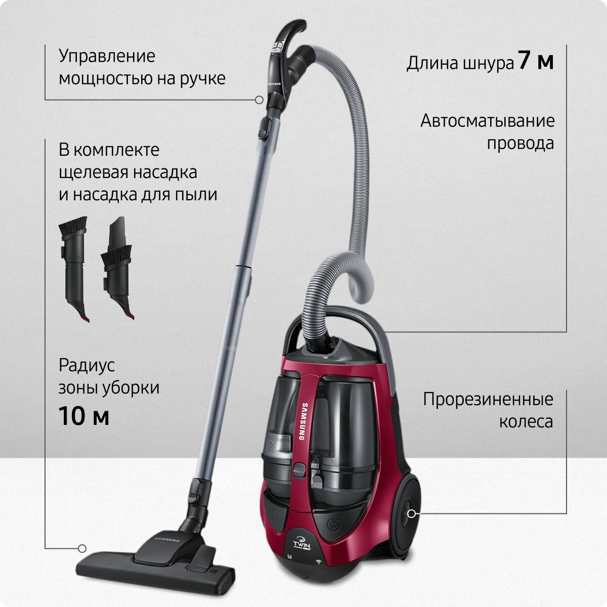Выбирая проводной пылесос Samsung, вы получаете надежного помощника, который обеспечит безупречную чистоту в вашем доме на долгие годы. Наслаждайтесь чистотой и свежестью с минимальными усилиями!