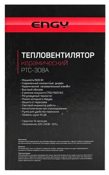 С Engy PTC-308A вы забудете о холоде и дискомфорте. Это доступный и практичный способ создать уютную атмосферу в любом помещении в холодное время года.