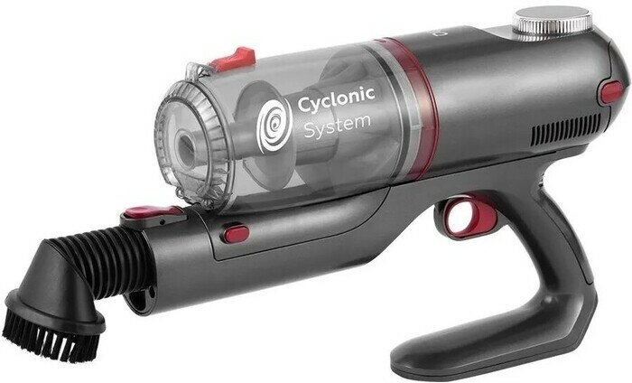 Информативный LCD-дисплей отображает важные параметры работы пылесоса, такие как уровень заряда аккумулятора и выбранный режим мощности. Это позволяет контролировать процесс уборки и своевременно заряжать устройство.
